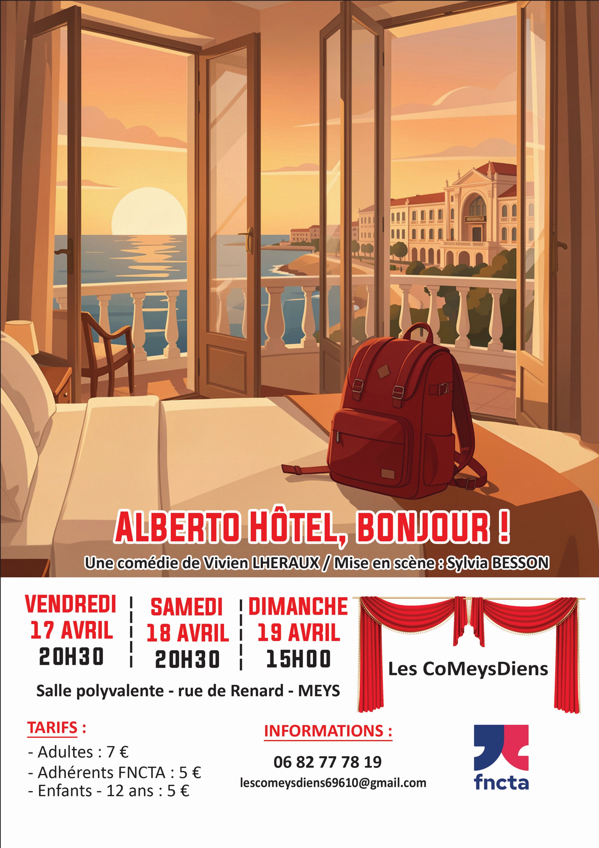 Comédie théâtre "Alberto hôtel, bonjour !". Par la troupe les CoMeydiens de Meys. Venez vivre une bulle de détente, de rire, avec nous !