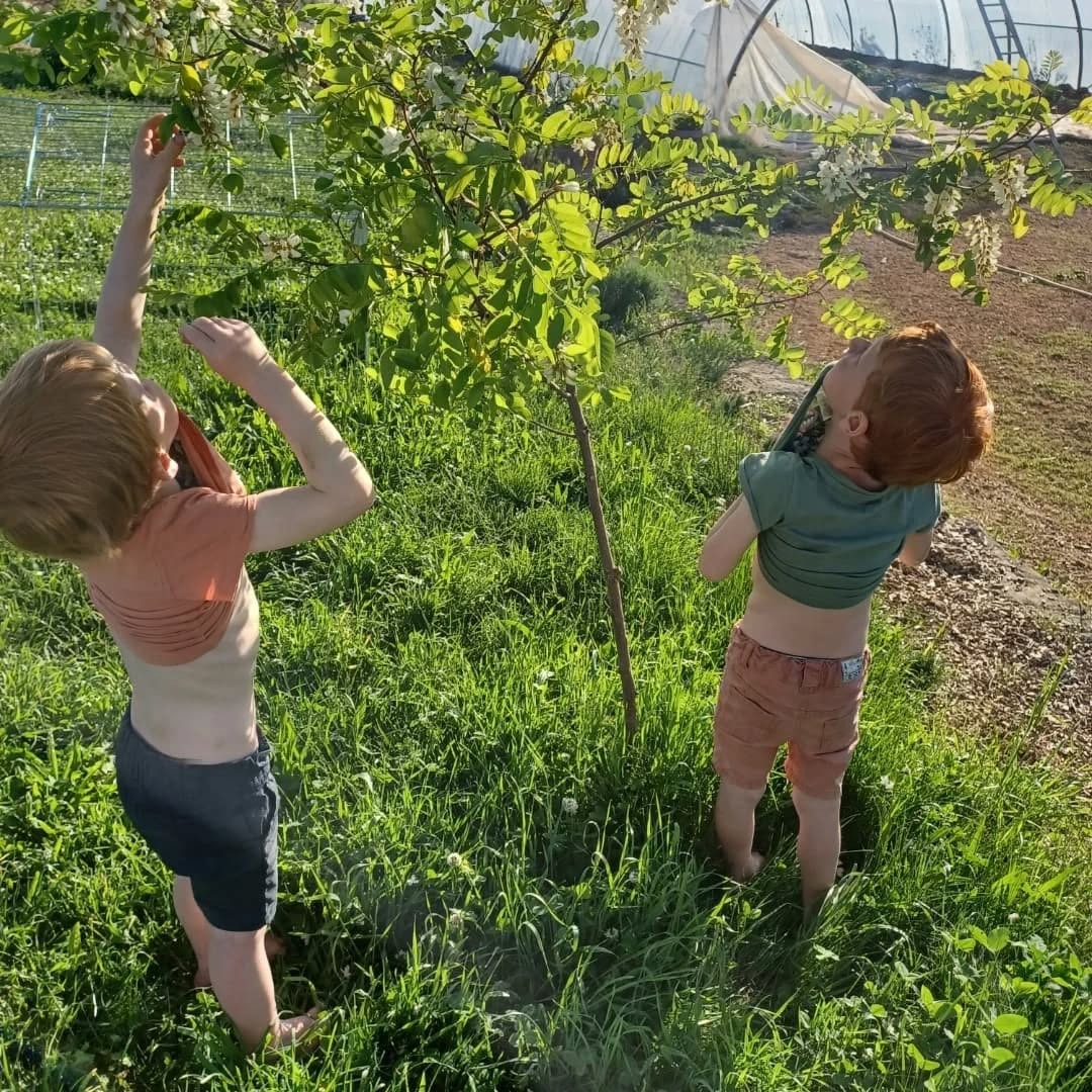 Une ferme bio accueillante, avec des animaux, un potager diversifié, des activités ludiques pour les enfants, et une ambiance familiale et chaleureuse.
