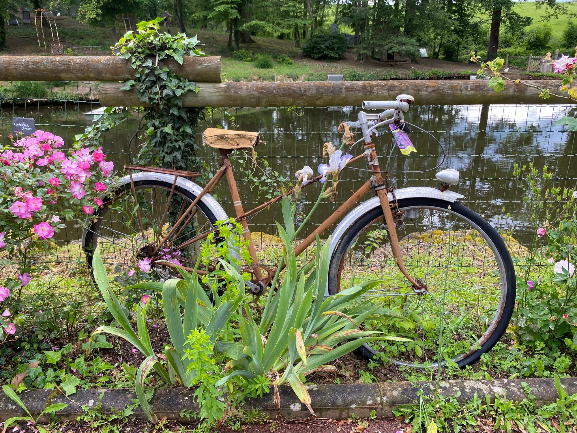 Les amoureux des roses reconnaitront peut-être les noms suivants ... Dans ce jardinn on peut admirer Ghislaine de Felligonde, Rosa viridiflora, Cuisse de Nymphe, Chapeau de Napoléon, Souvenir de la Malmaison parmi les plus connus. Mais aussi des grimpants et des lianes, comme Alberic Barbier, Henri Barruet, qui prennent leur envol dans les arbres.