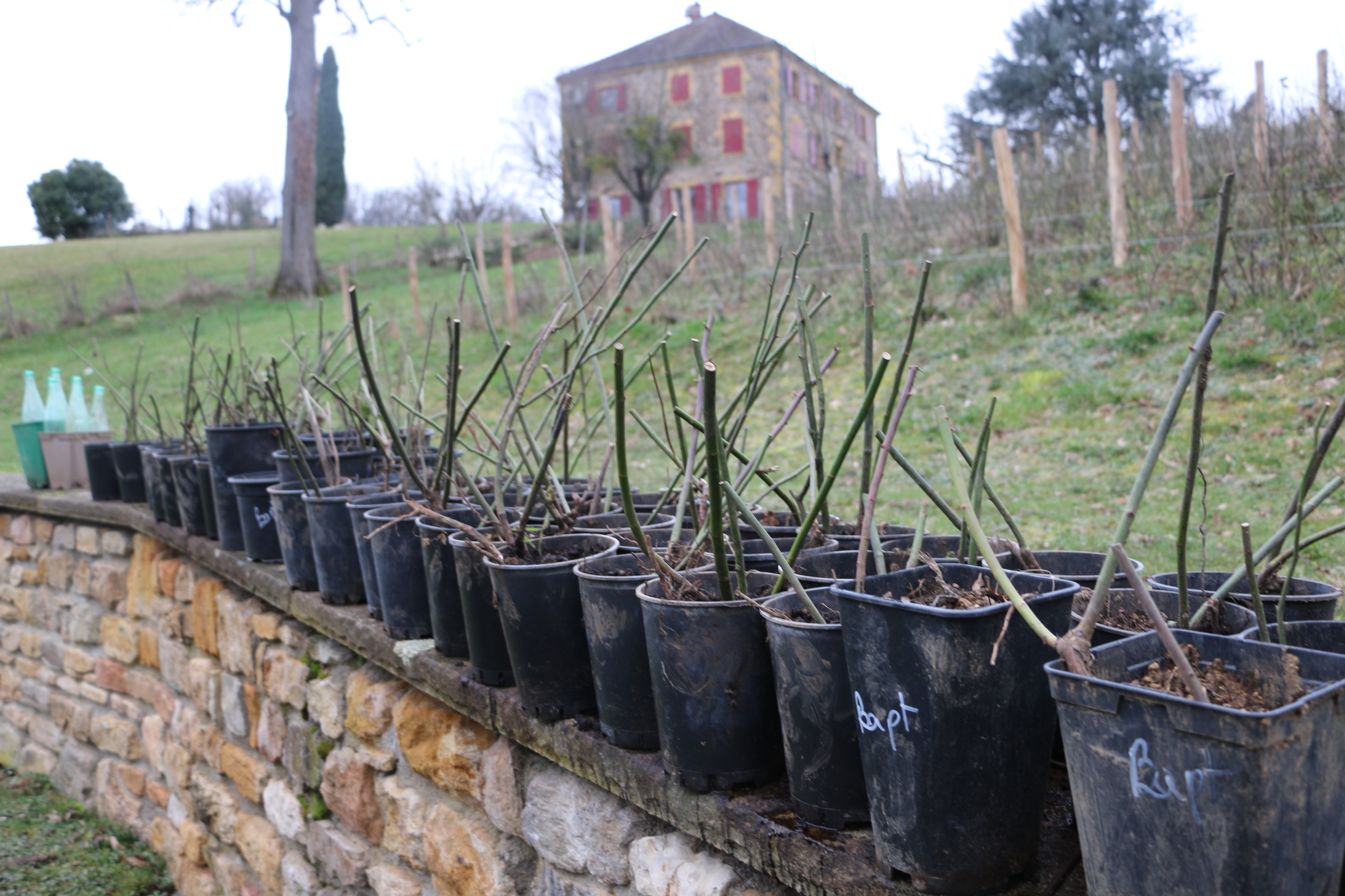 Au fil des années ont été plantés plus de cinq cents rosiers anciens différents au sein de la propriété désormais privée d'environ un hectare ainsi que quelques rosiers modernes dont des anglais.