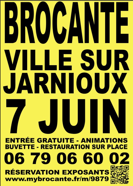 Le Sou des écoles de Ville-sur-Jarnioux organise la troisième édition de sa brocante le 7 juin 2026 de 8h à 17h sur la place du village et dans les rues alentour. Animations, buvette et petite restauration sur place. Entrée gratuite pour les visiteurs.