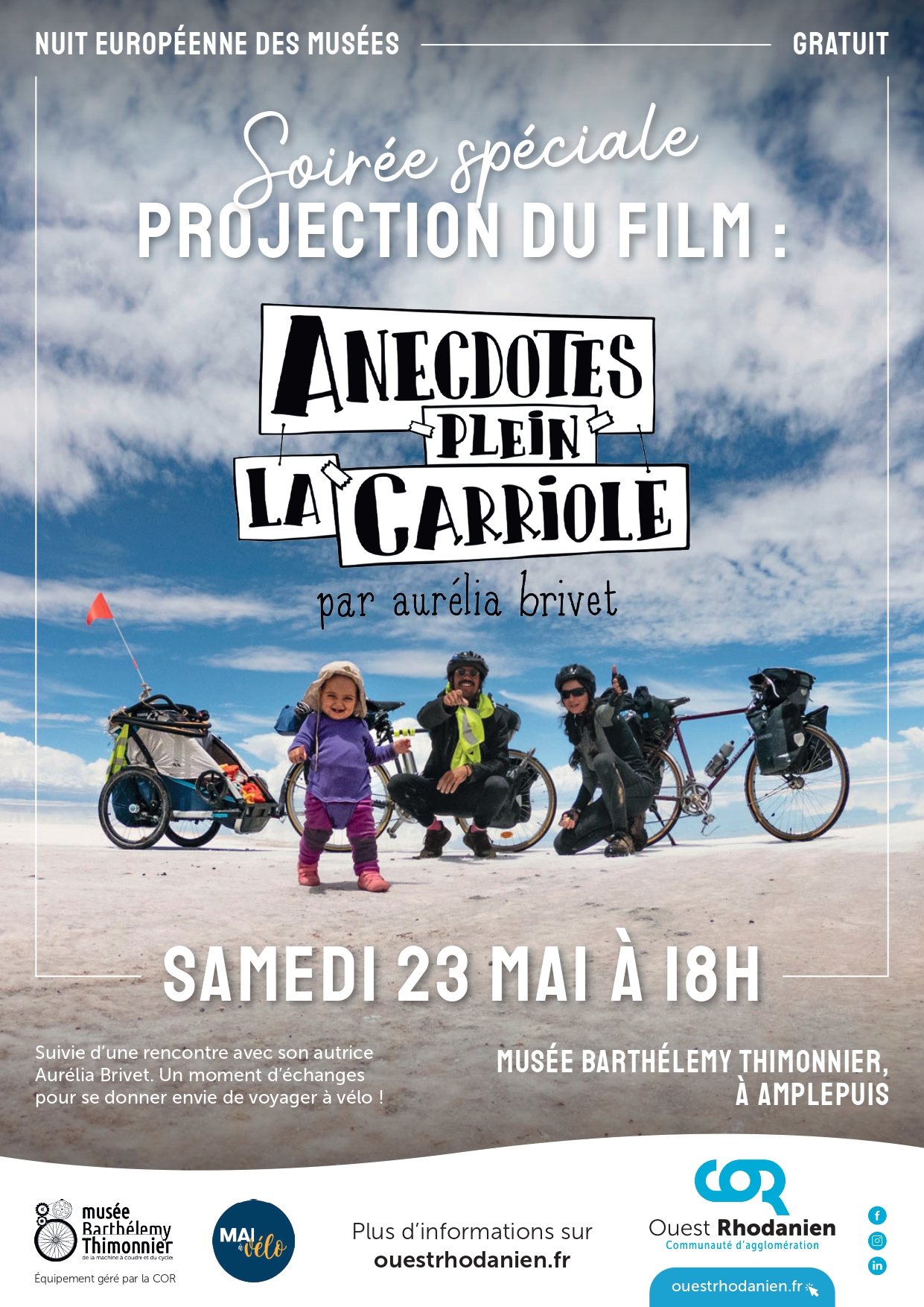 Dans le cadre de la Nuit des musées et de l’exposition temporaire dédiée au voyage à vélo, soirée spéciale autour de la projection du film « Anecdotes plein la carriole »