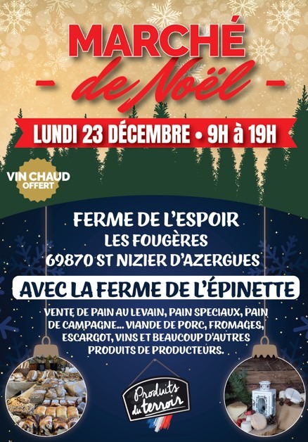 Avec la Ferme de l'Epinette, la Ferme de l'Espoir vous propose de venir acheter vos produits frais pour les fêtes de Noël.