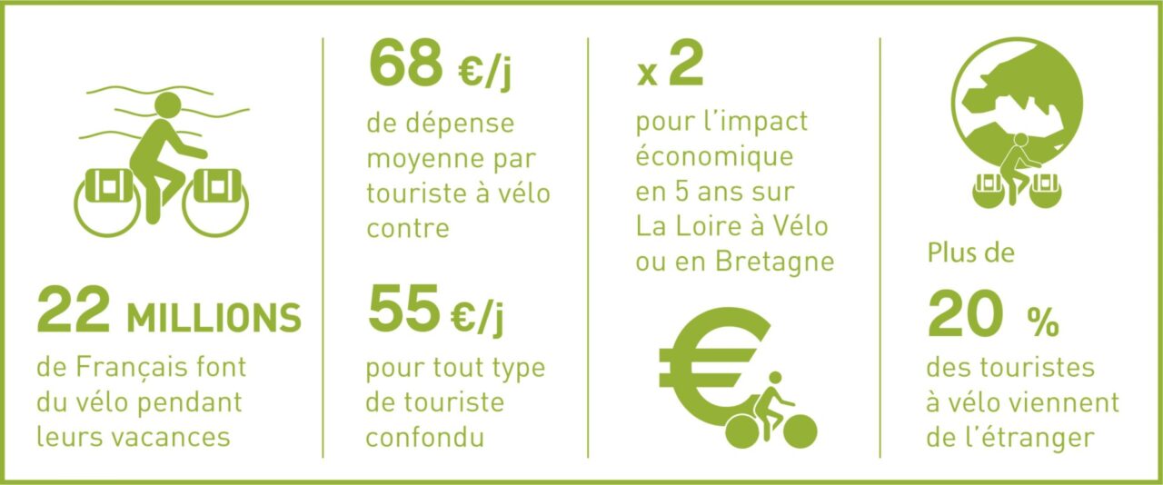* Indicateurs du tourisme à vélo en France – Source : Impact économique et potentiel de développement des usages du vélo en France en 2020.
