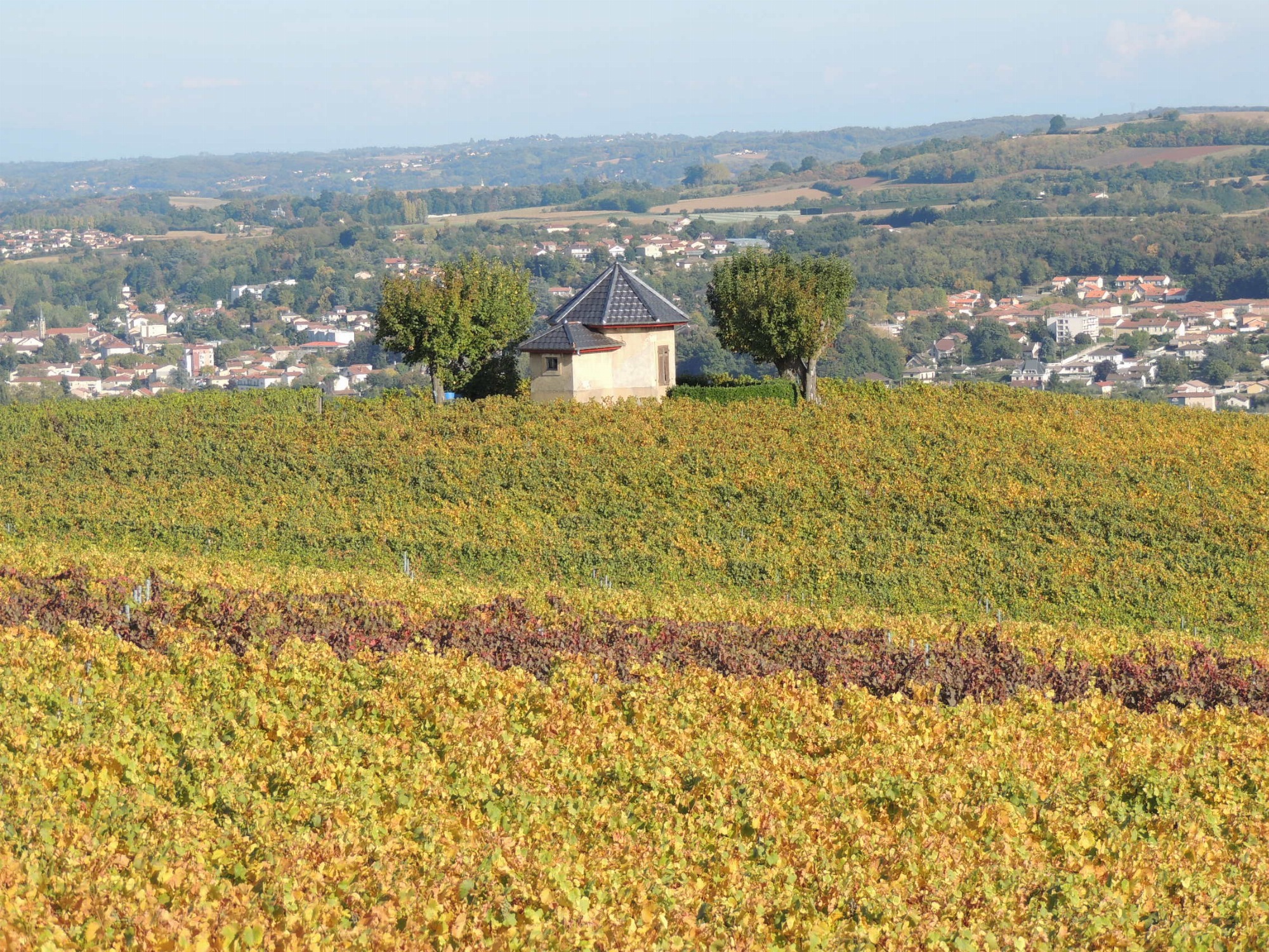 Ce parcours, sans difficulté, emprunte les chemins qui serpentent au milieu des vignes des Coteaux du Lyonnais.