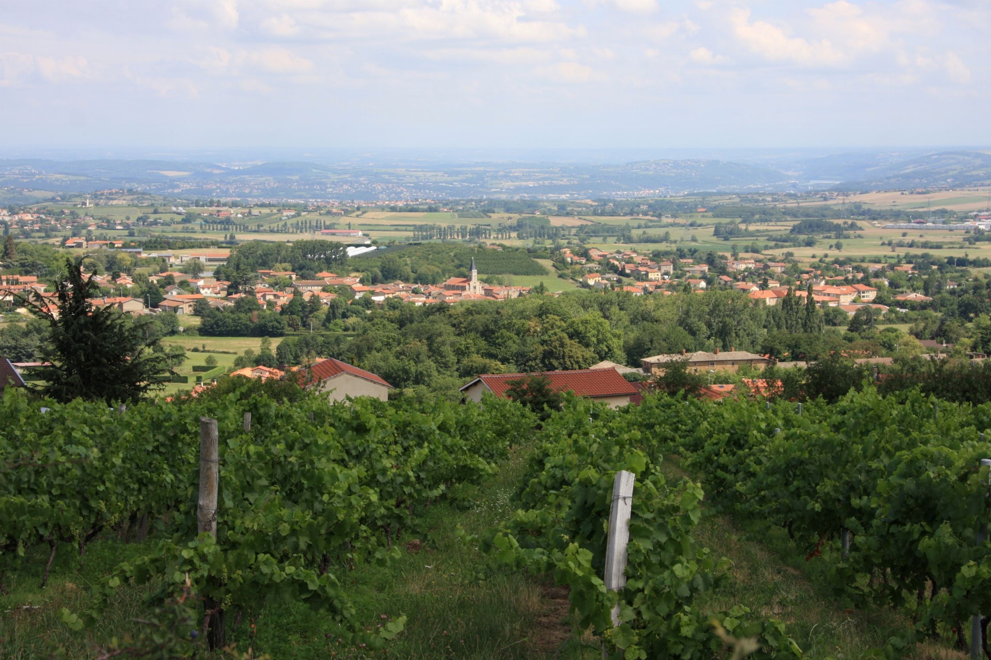 La descente, bien que technique par endroits, se déroule de manière fluide. Retour par le bocage mornantais et le centre-ville de Mornant (balises peintes). Belles vues panoramiques sur la chaîne des Alpes en fonction de la nébulosité.
