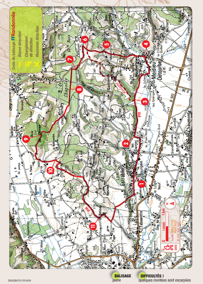 - Au centre du village (poteau « Moidieu-Détourbe »), poursuivez l’itinéraire.