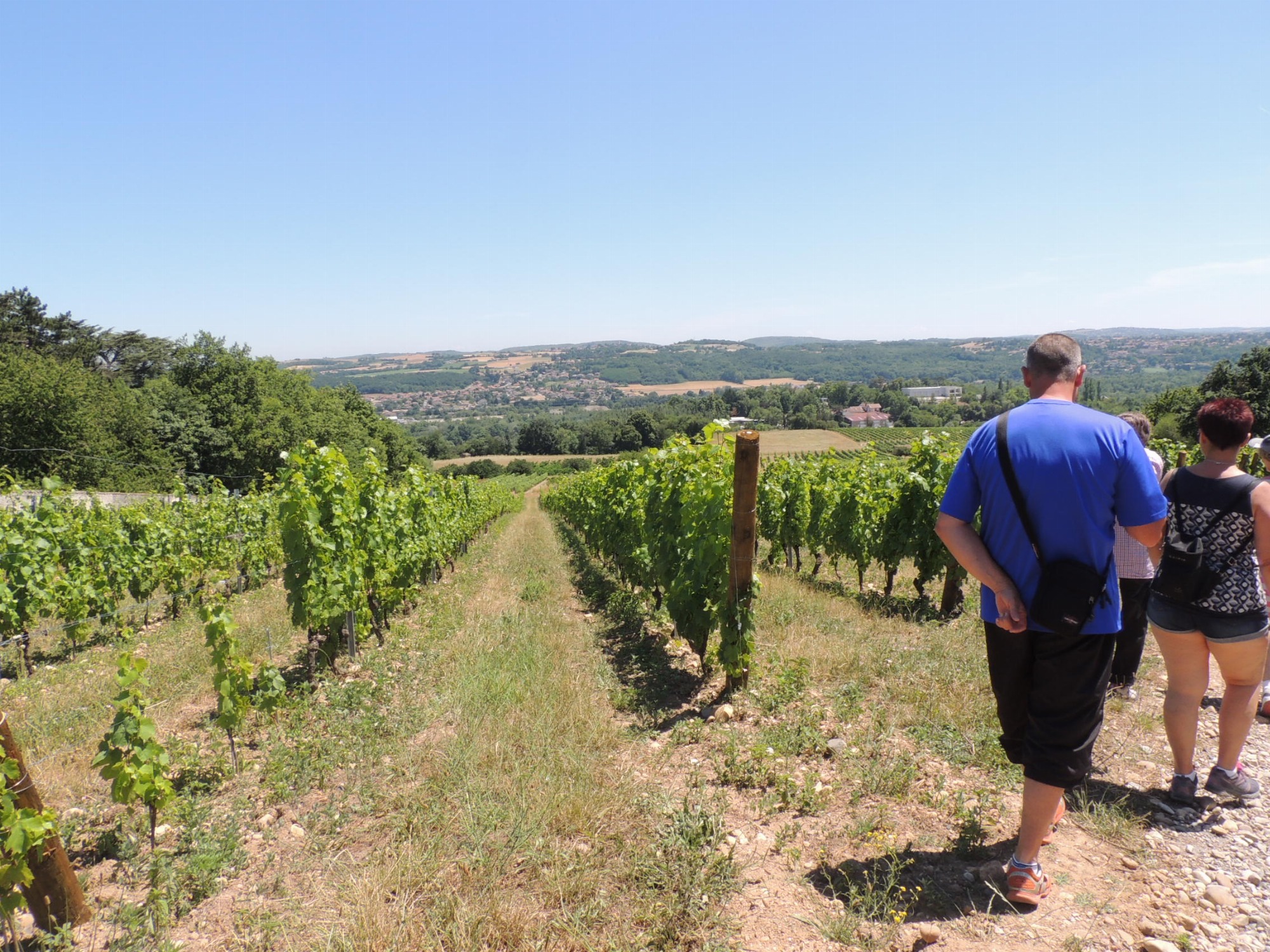 Un agréable chemin de terre entre vignes, cultures de cerises, abricots, pêches, et fruits sauvages (noix, noisettes, prunes, mûres...).