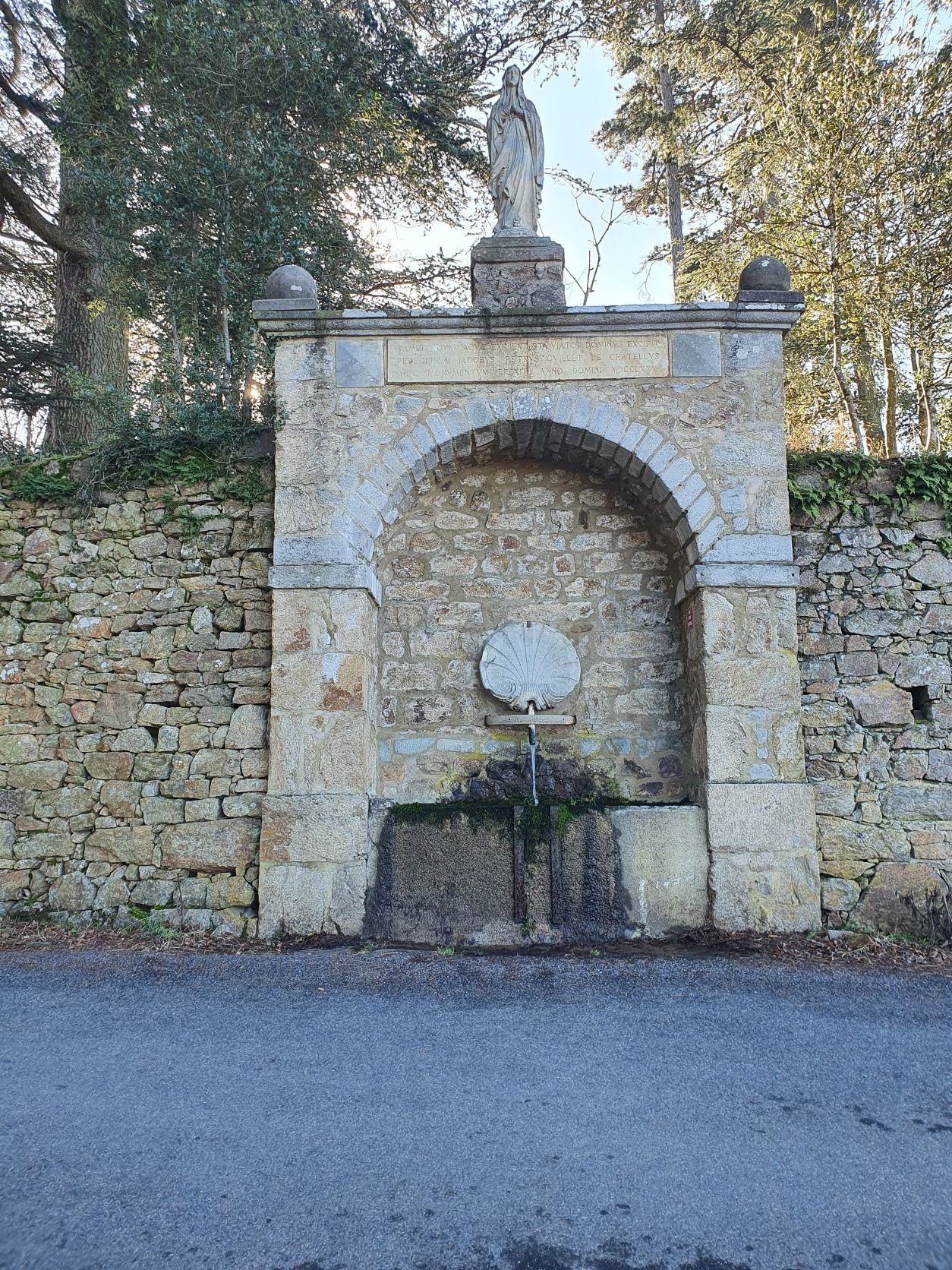 À voir en chemin : Le château (privé) classé monument historique, l'Eglise au centre du village, la "Fontaine de la vierge" avec sa coquille Saint-Jacques sculptée, et la Croix des Bénéon.