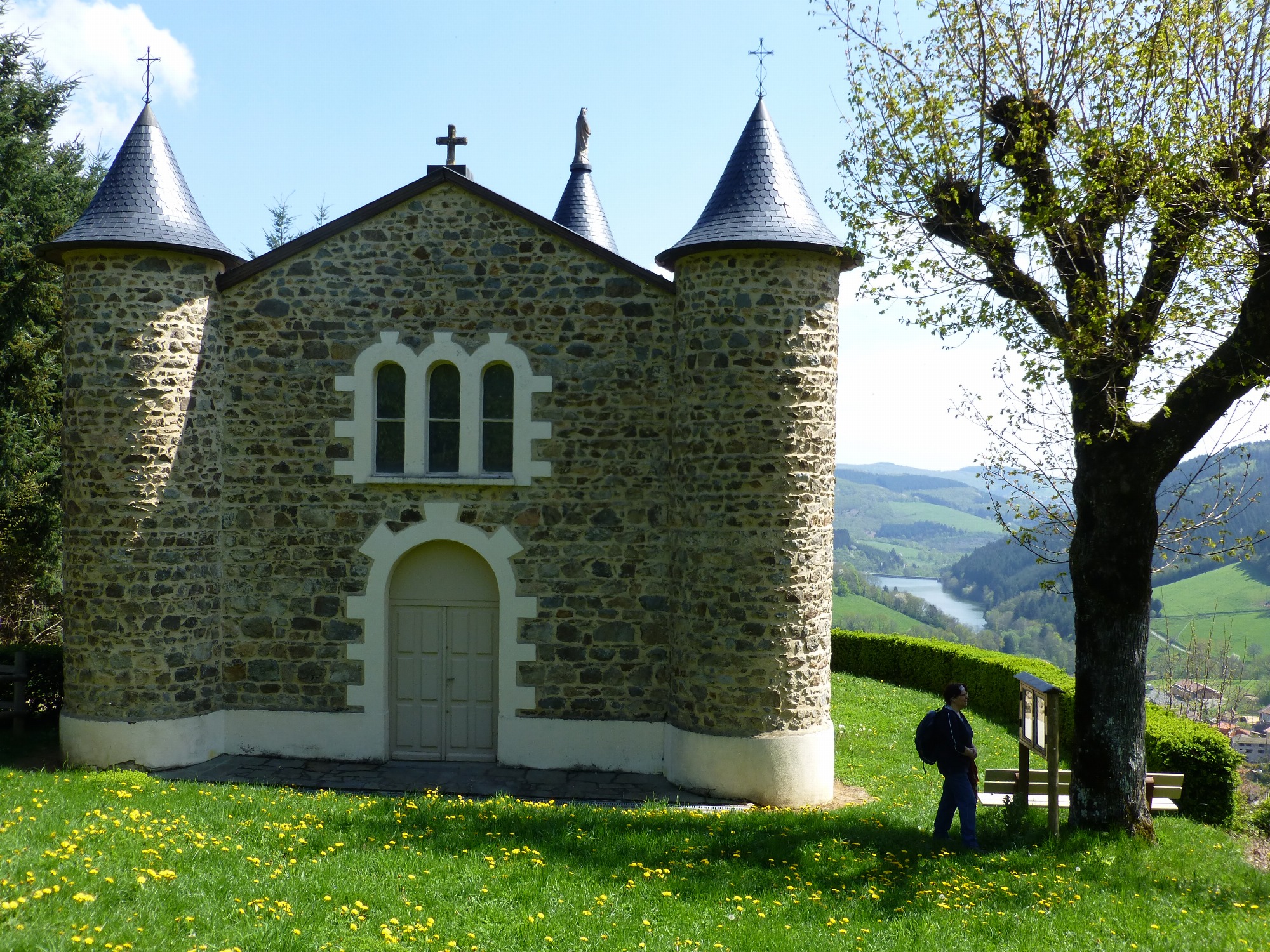 Circuit : Descendre vers la boulangerie et rejoindre la rivière en fond de vallée. Monter le chemin en terre le long de la rivière. Suivre le balisage en tournant à gauche pour traverser la rivière. Monter pour rejoindre le GR7 (carrefour). Tourner à gauche. Vous arrivez à l'étang de Saint-Cyr de Valorges (Plans d'eau - Pêche - Aire de pique-nique et aire de jeux - salle hors sacs - WC). Longer l'étang pour retrouver la départementale en direction de Joux. Tourner à gauche (petite marque au sol). Suivre le GR7 en prenant le chemin de terre à droite. Tout de suite à la sortie du bois, au carrefour, tourner à gauche (vous quittez le GR7). Rejoindre la chapelle de la Salette.