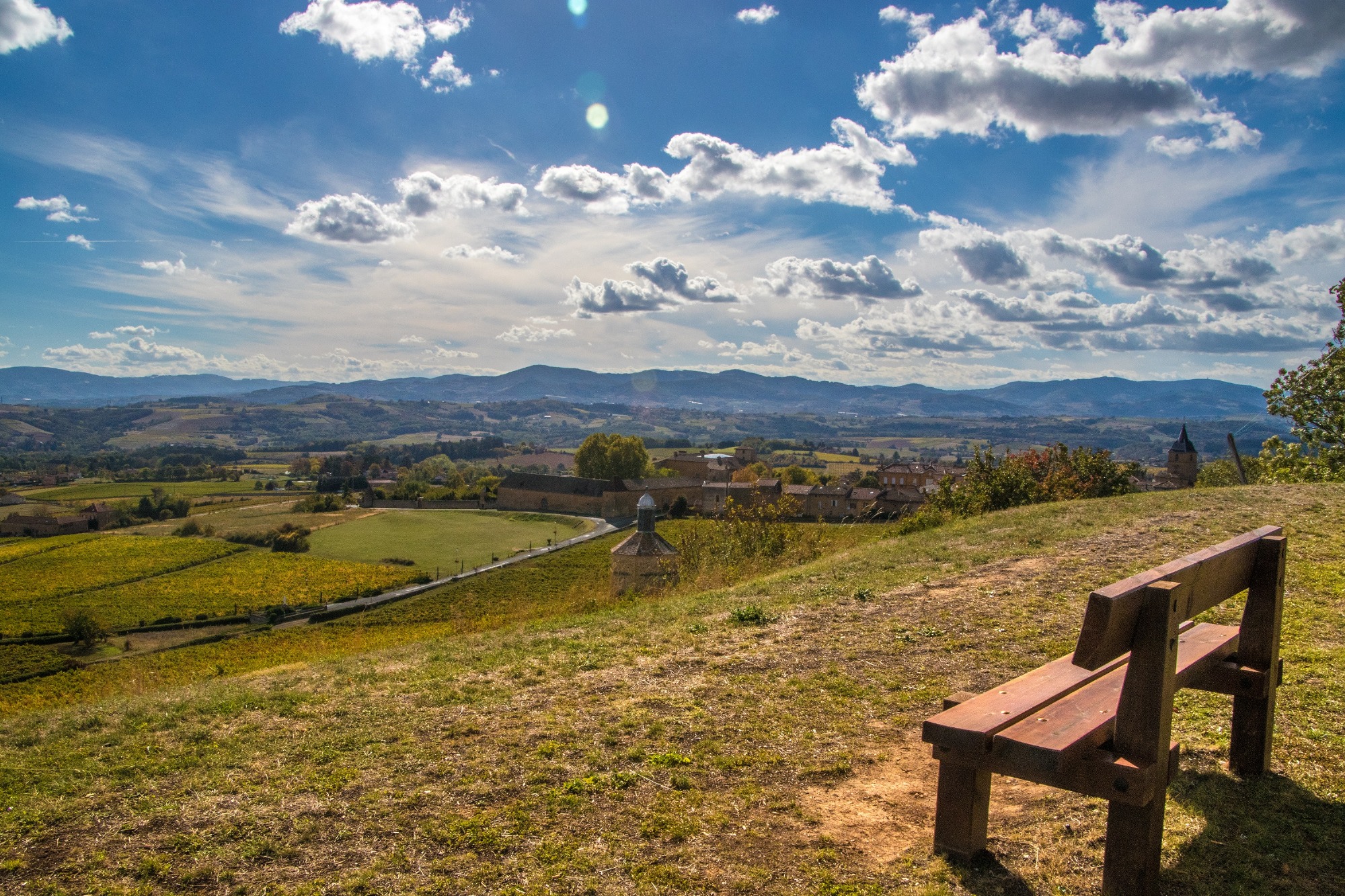 Boucle extraite du TopoGuide Tour du Beaujolais des Pierres Dorées qui emmène le randonneur à la découverte d'un territoire original et unique, façonné par la pierre calcaire ocre jaune.