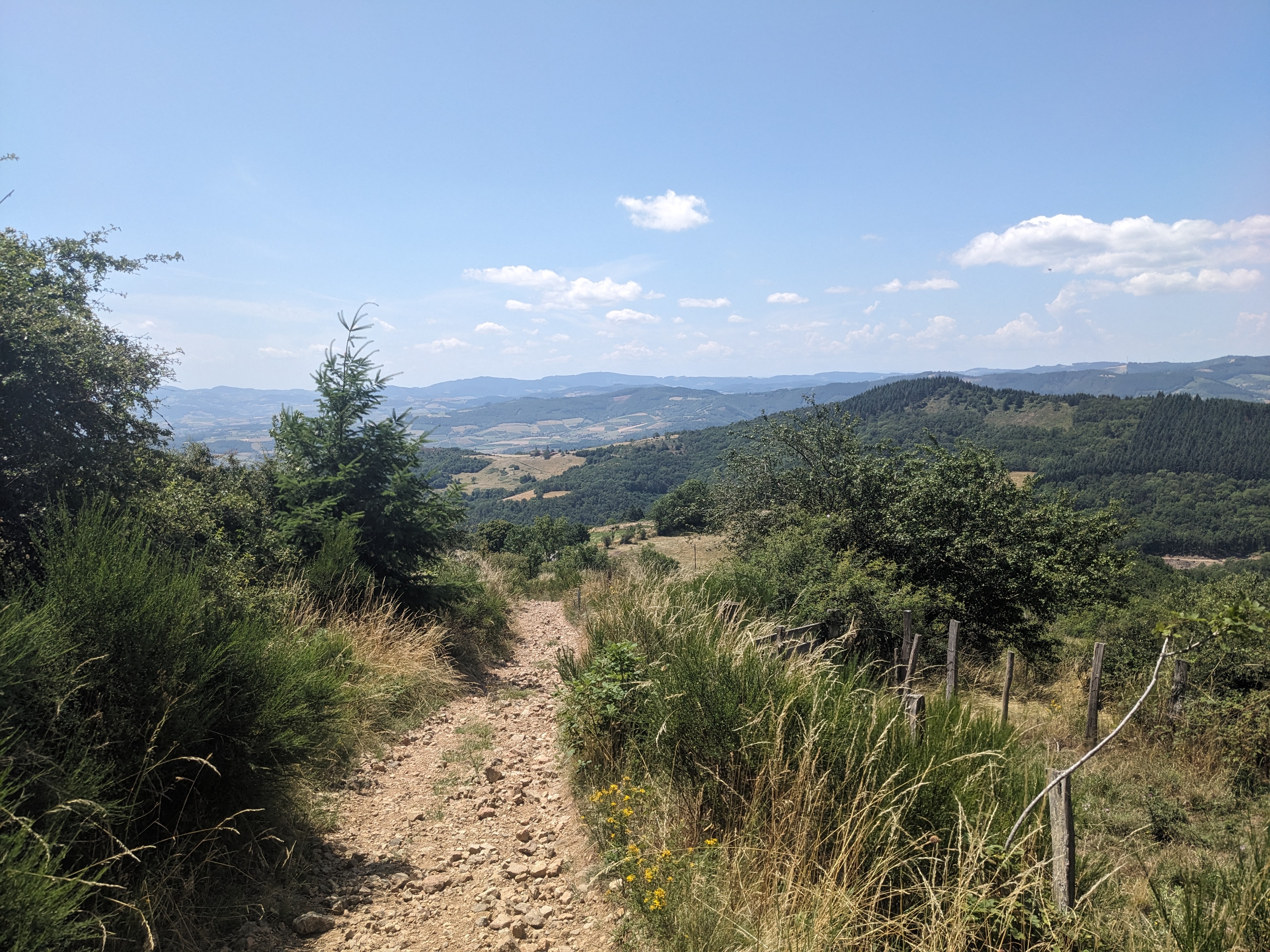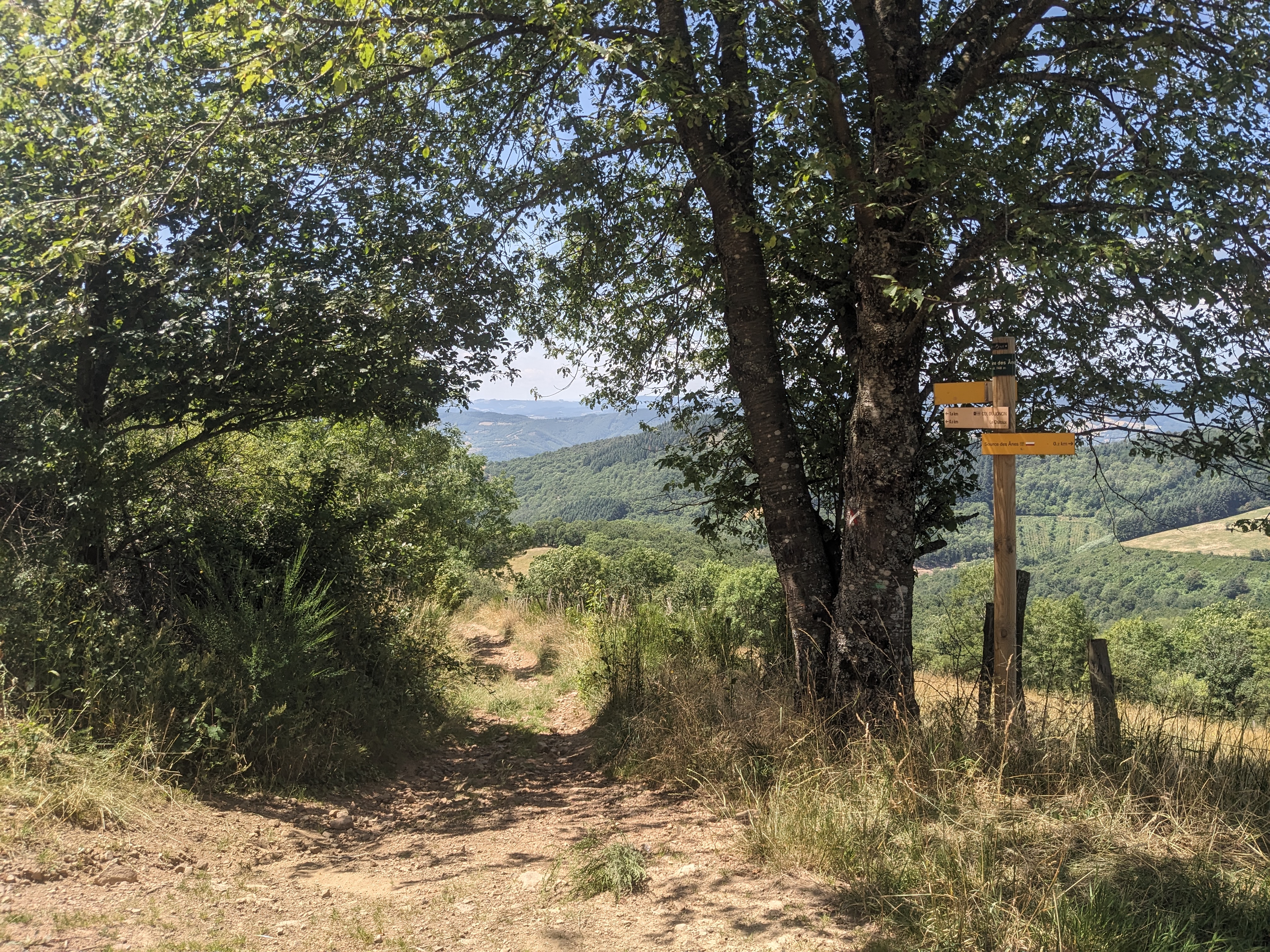 Après Les Sapins, le vignoble réapparaît en doublon avec l’activité pastorale. À Croix du Maury, des murets rosés rehaussés par un rang de pierres verticales évitent aux chèvres de fuguer. D’anciens puits de mine témoignent également de l’activité passée de l’extraction de charbon livré jusqu’à Saint-Étienne dans la Loire.