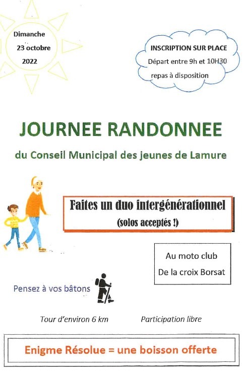 Départ entre 9h et 10h30. Repas à disposition.