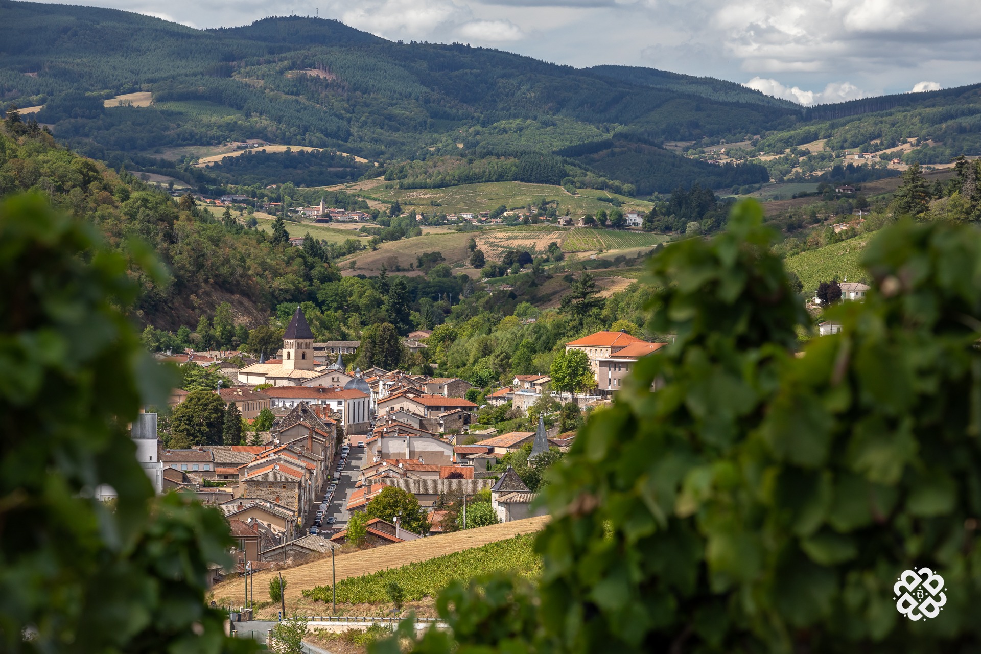 Départ : à gauche de l'église Saint Nicolas et de la maison du terroir beaujolais, remonter la rue principale jusqu'à la place de la fontaine.