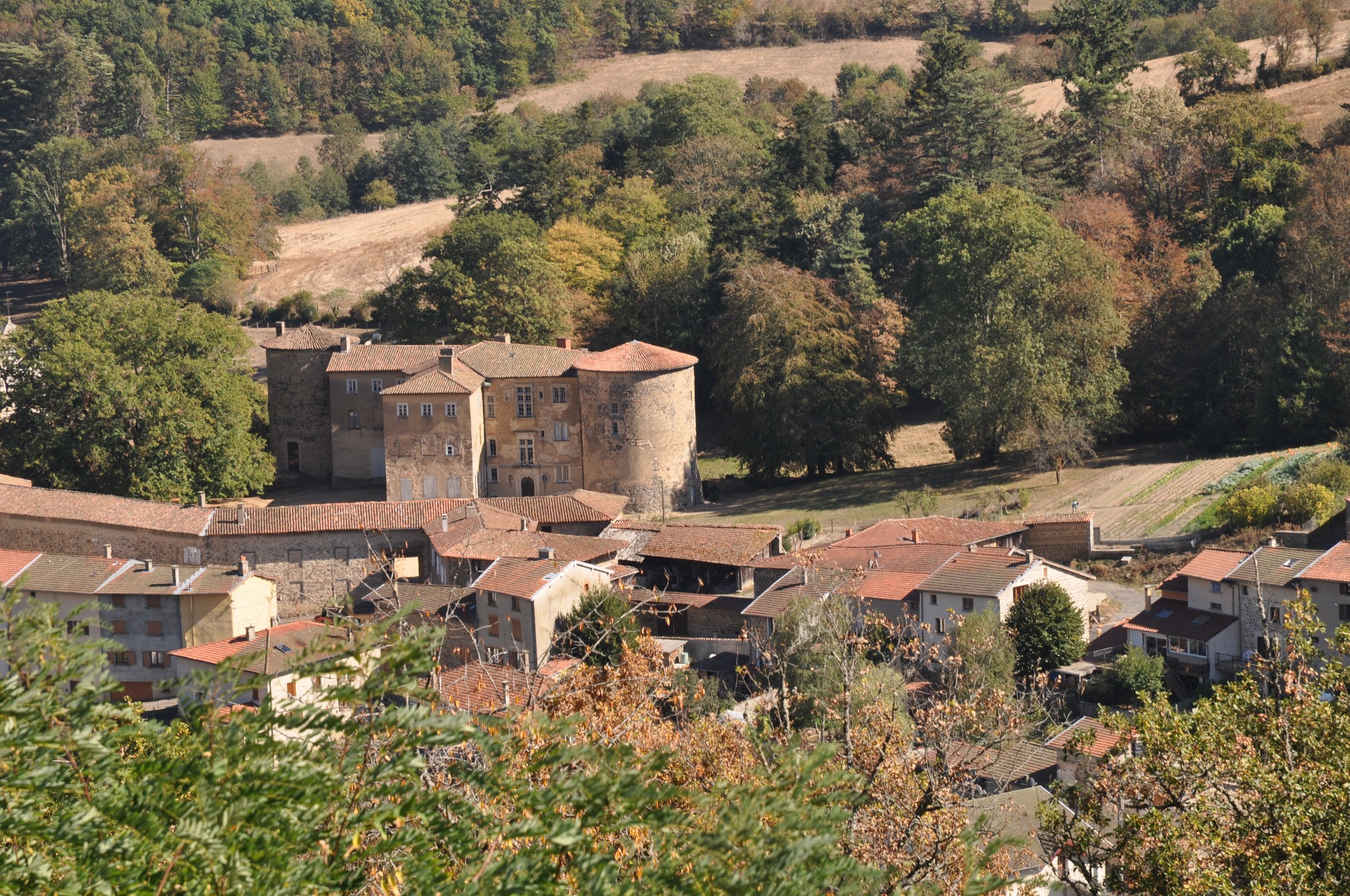 Le château s’admire de l’extérieur car il est privé. Une première mention de son existence remonte à XIesiècle. Depuis ses origines, il a appartenu à deux familles et toujours été habité. Excentré du bourg, le barrage rappelle l’histoire industrielle textile autrefois prospère dans la vallée de la Turdine. Il alimentait les usines en eaux. Très peu calcaires, elles servent notamment aujourd’hui à l’élaboration de bières.