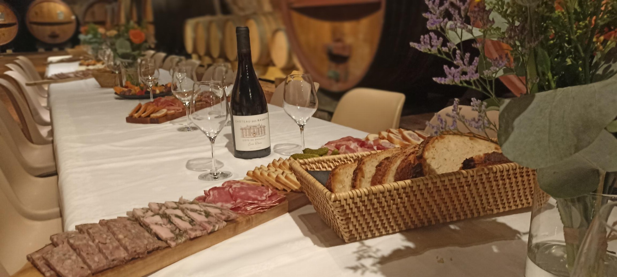 Découvrez l'histoire du Château des Ravatys et laissez vous emporter par la beauté des lieux. Dans le clos du Château, vous pourrez vous promener au milieu de nos vignes, admirer la vue sur le Mont Brouilly sur lequel nous exploitons des parcelles en Côte de Brouilly. Puis vous explorerez le cuvage et nos deux caves souterraines voutées.
