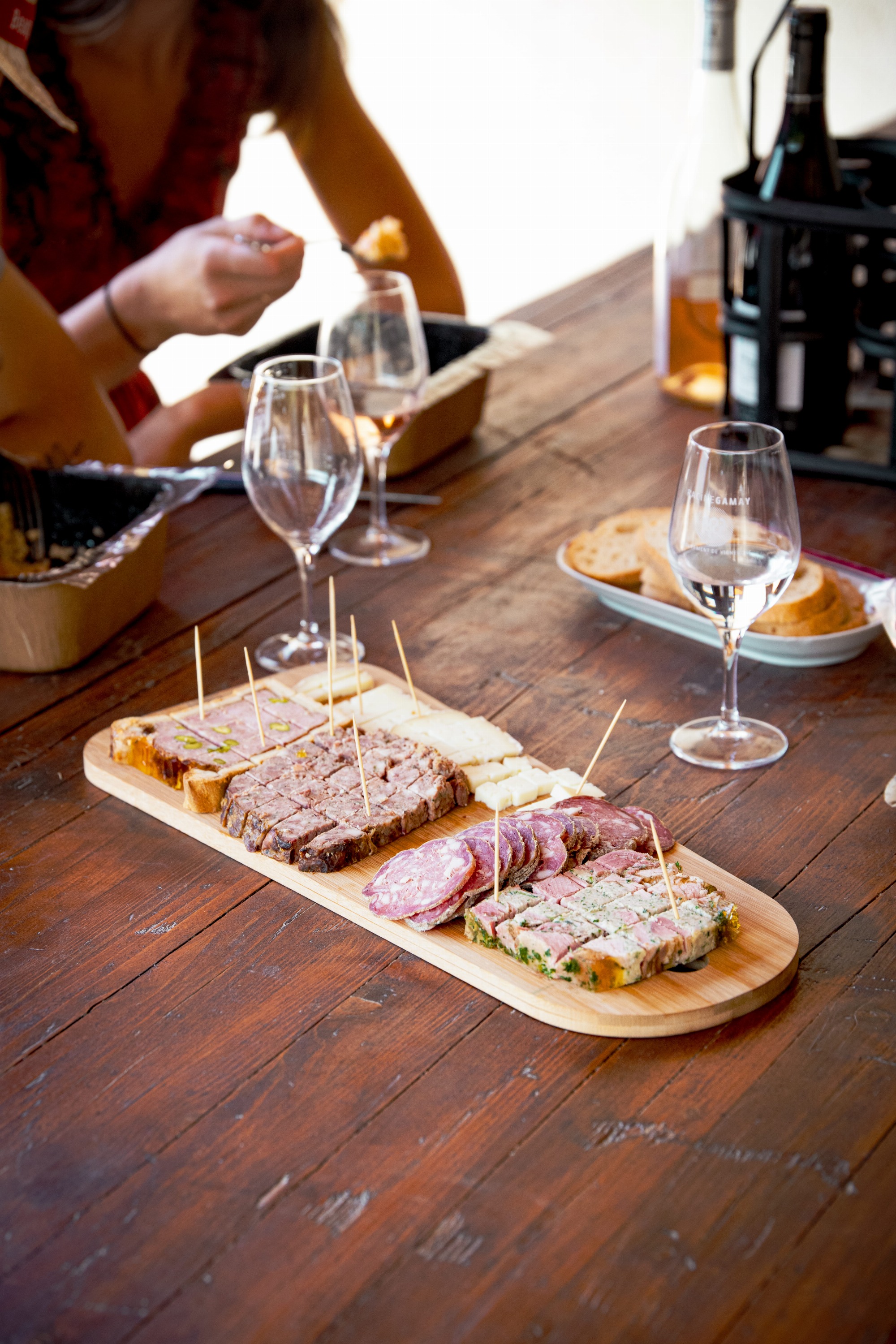 Après cet atelier ludique, une dégustation commentée des vins accompagnés d’un mâchon typiquement Beaujolais, composé de quiches artisanales, charcuteries et fromages locaux, et une délicieuse tarte à la praline.