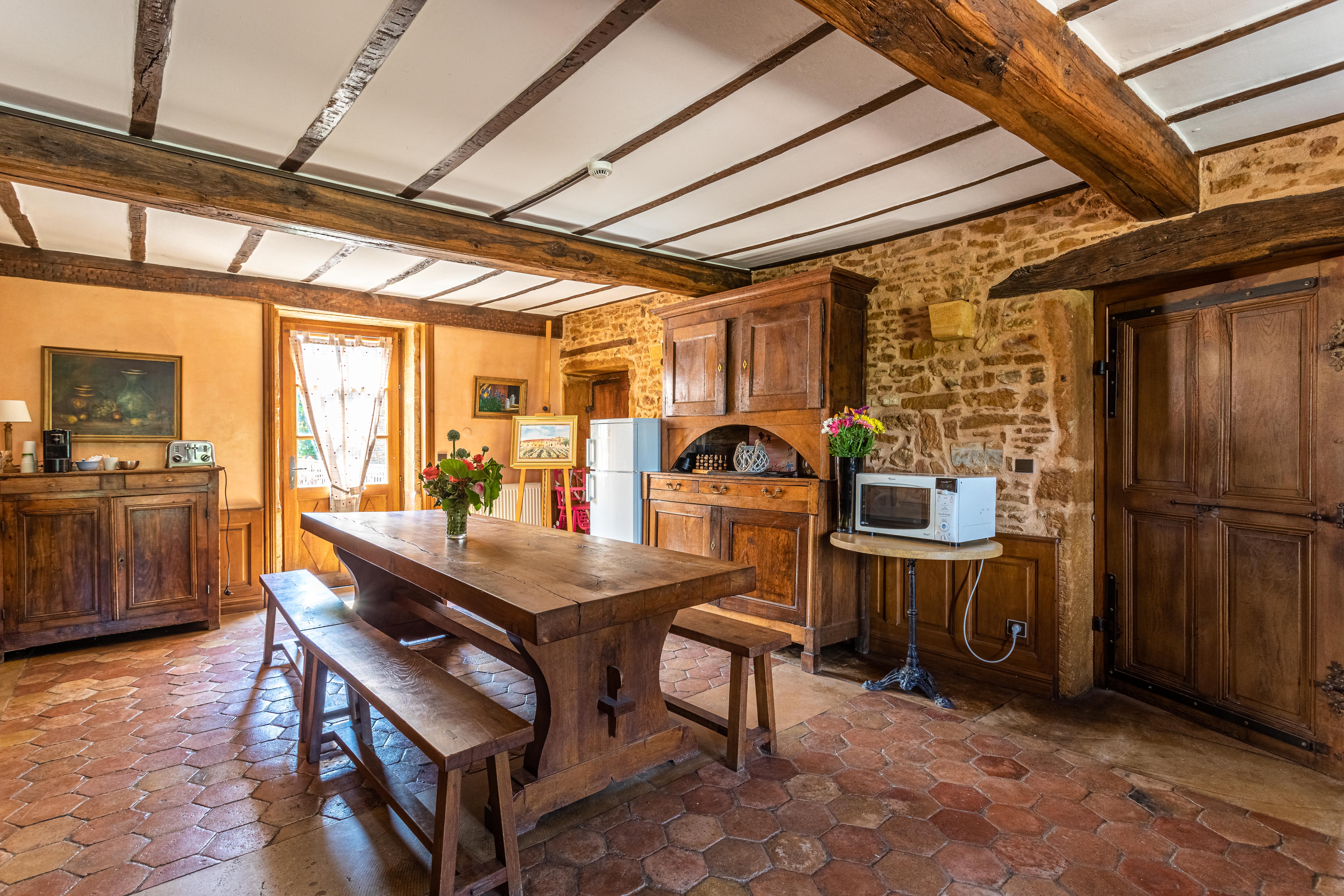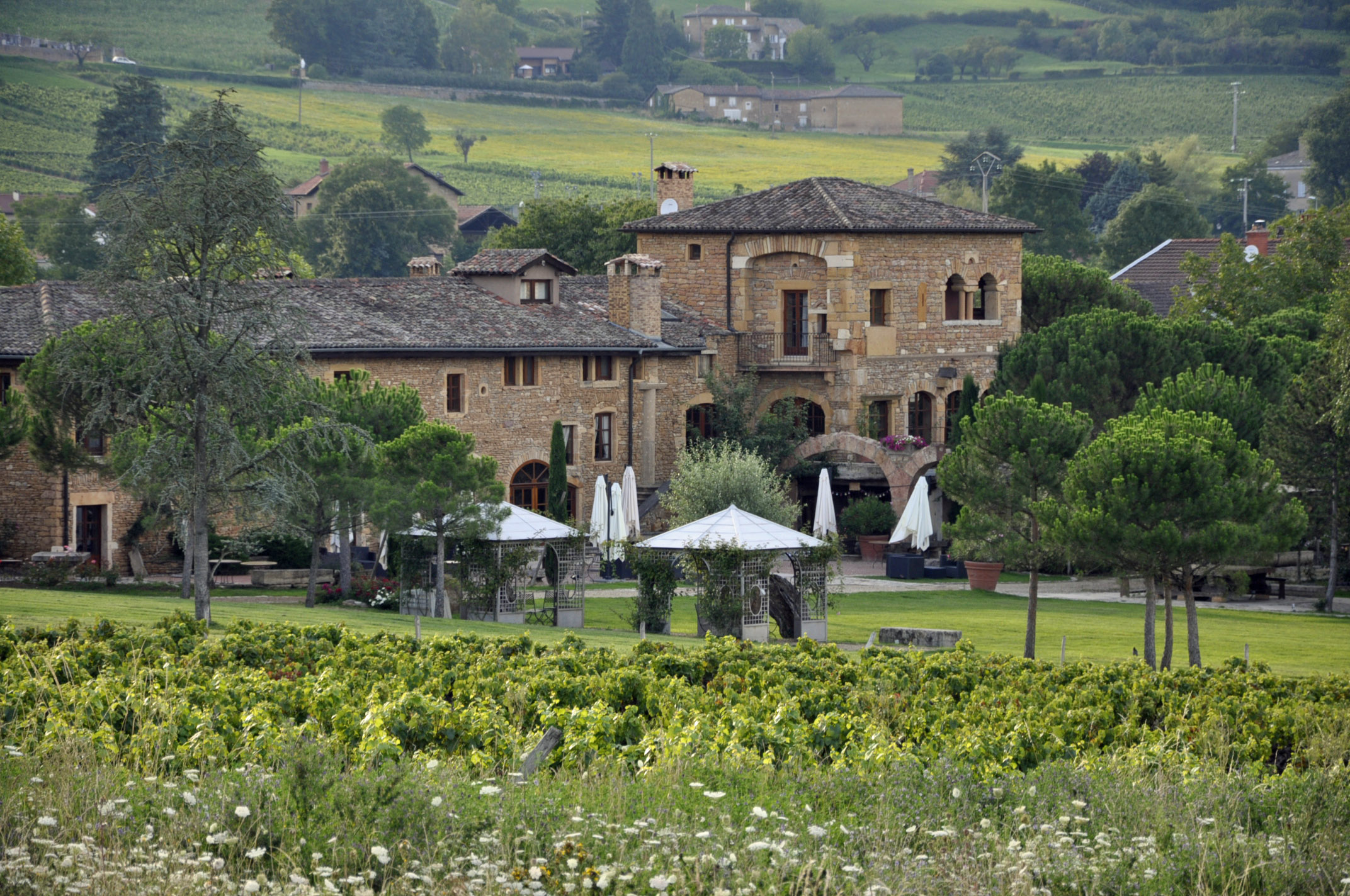 Ancienne ferme vinicole entièrement restaurée en pierres dorées par son propriétaire (Maçon Italien) qui vous offre au cœur du vignoble beaujolais calme et tranquillité pour vos événements privés ou professionnels.