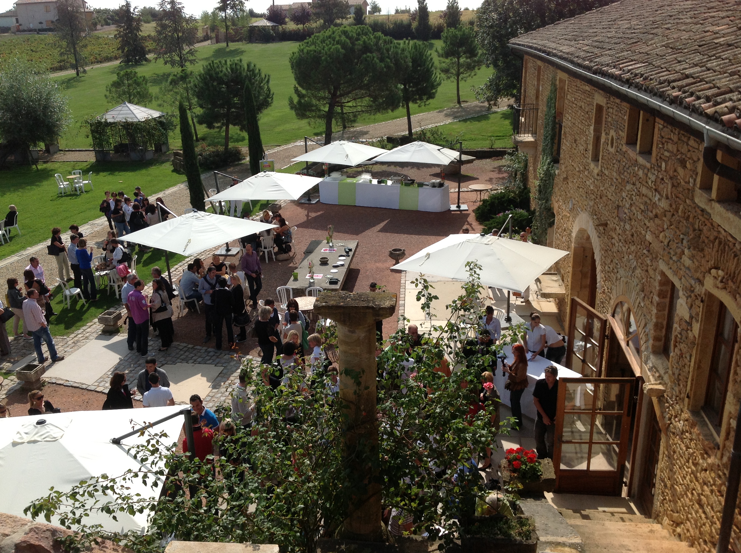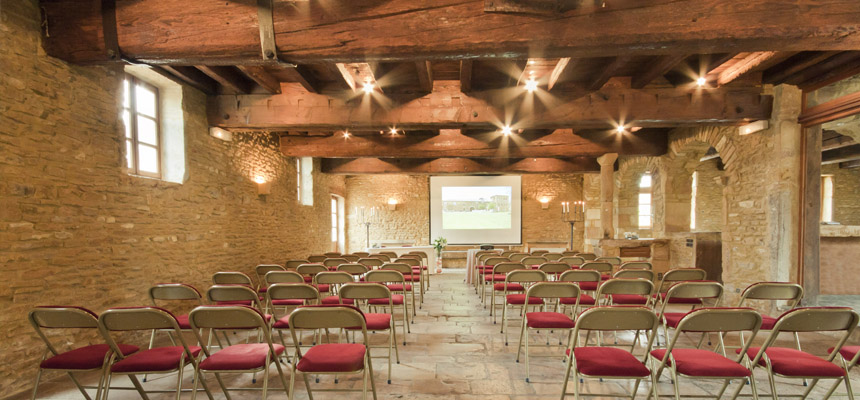 La salle "Pressoir" pouvant accueillir 230 personnes en repas, 350 personnes en cocktail, 150 personnes en réunion. L Ensemble des caves accueillent 120 personnes en repas, 250 personnes en cocktail, possibilité de salles de "sous com" pour vos réunions. Pour les évènements privés ou professionnels de 10 à 50 personnes, les salons du domaine sont privatisés. Les jardins et terrasses vous accueillent pour vos repas, cocktail, incentive. Parking privé de 150 places. Possibilité d'extension sous tente dressée sur la terrasse. Pour les réunions, le matériel technique est installé par nos soins avec écran, vidéo projecteur, paper board, Le wifi est disponible gratuitement. Coworking en espace partagé ou privé.