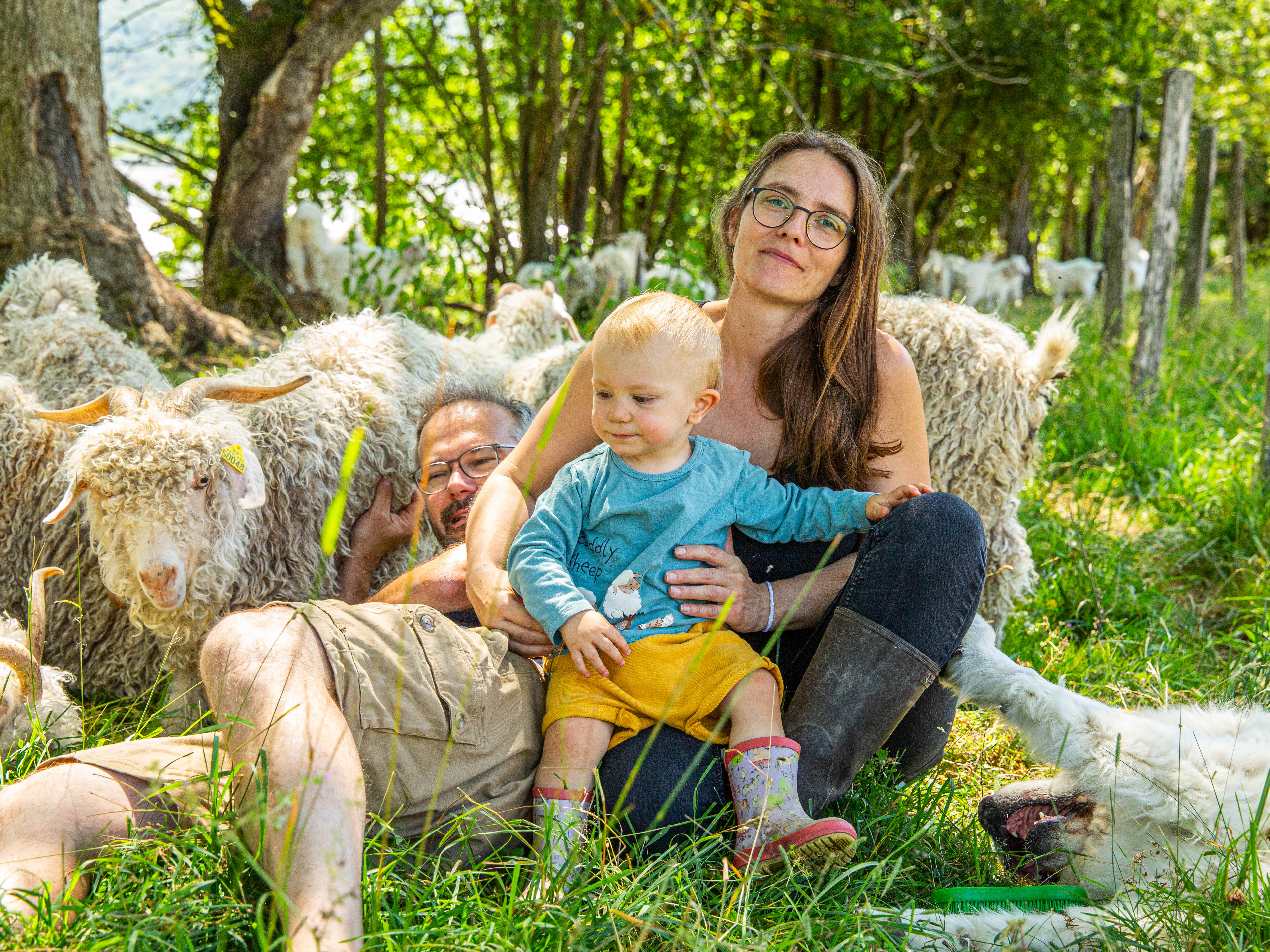 A la ferme, nous élevons environ 120 chèvres angora et 50 chèvres cachemire dans le respect de l’environnement et du bien-être des animaux. Nous proposons ainsi une gamme de produits variés complétée par des pulls tricotés main ainsi que des vêtements faits sur mesure, le tout en Mohair ou en Mohair et Soie et Cachemire. Pour nous, par cette aventure, c'est le souhait de partager notre passion d'éleveurs et de faire découvrir un label, celui du « Mohair de nos chèvres ».