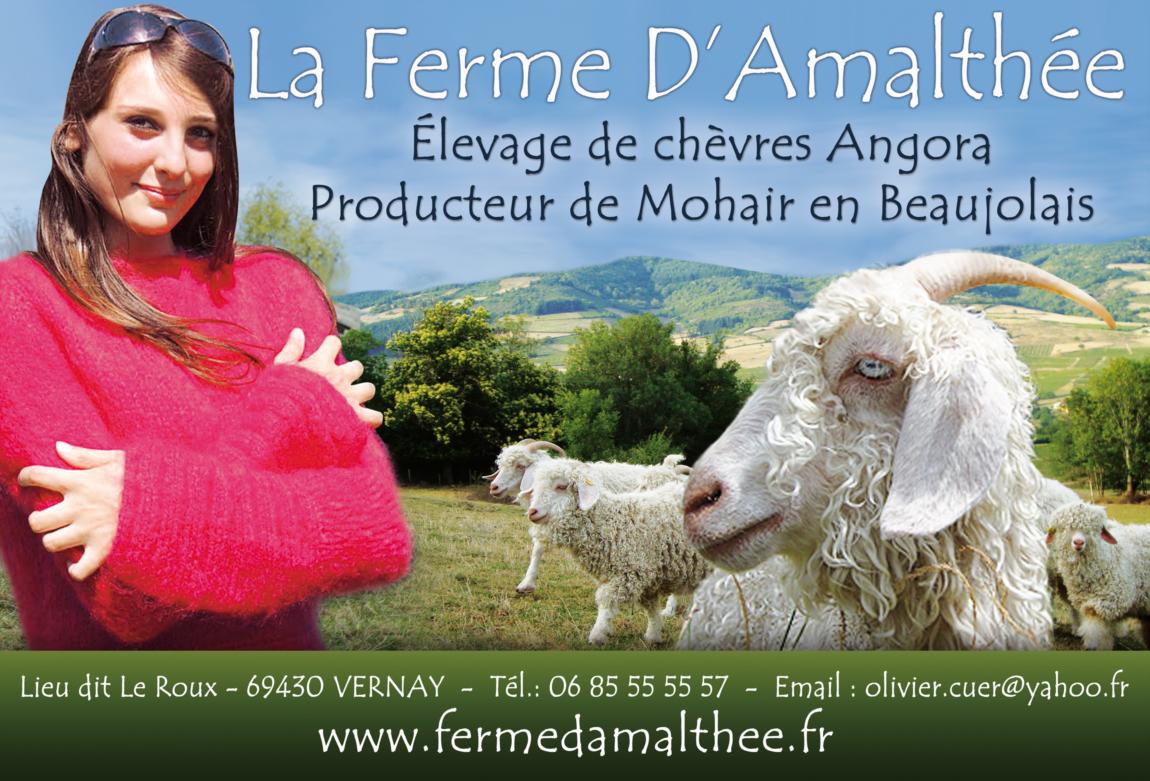 La ferme d’Amalthée est un élevage de chèvres angora et cachemire en Beaujolais. A partir du poil de nos chèvres,nous produisons la fibre mohair et cachemire que nous transformons en différents produits(pull, écharpe..)et que nous vendons en vente directe
