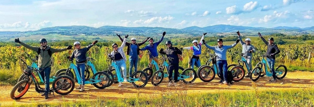 Venez découvrir le Beaujolais et les villages des Pierres Dorées autrement ! Au guidon d’une trottinette tout terrain 100% électrique, une activité fun, ludique et accessible à tous (à partir de 14 ans / 1m45).