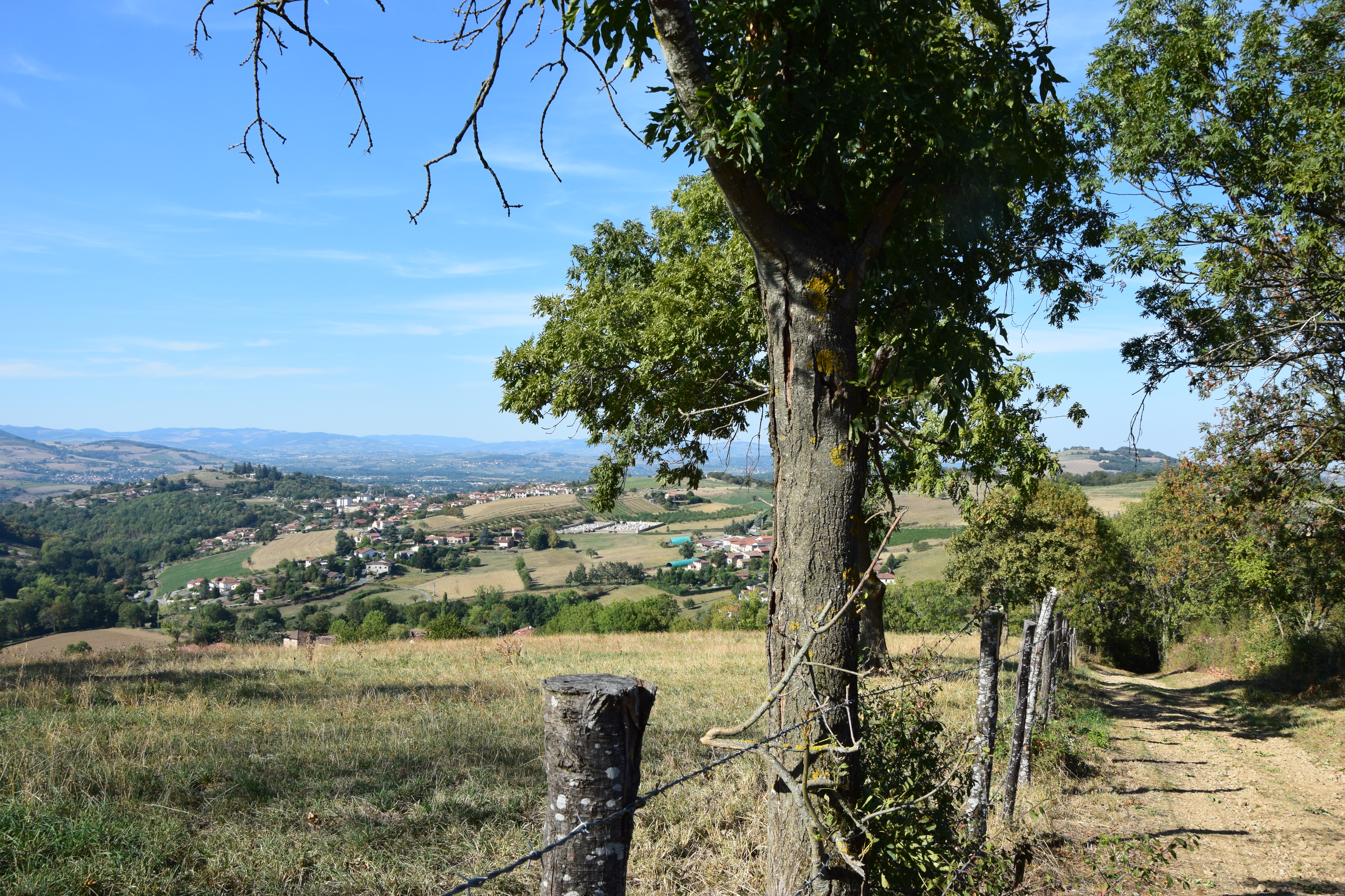 Le + de cette balade : La table de lecture du paysage offrant un large panorama sur les Monts de Tarare et les Monts du Beaujolais. A vos pieds le village de Saint Pierre la Palud ses terres agricoles, ses vergers et les vestiges de son passé minier.