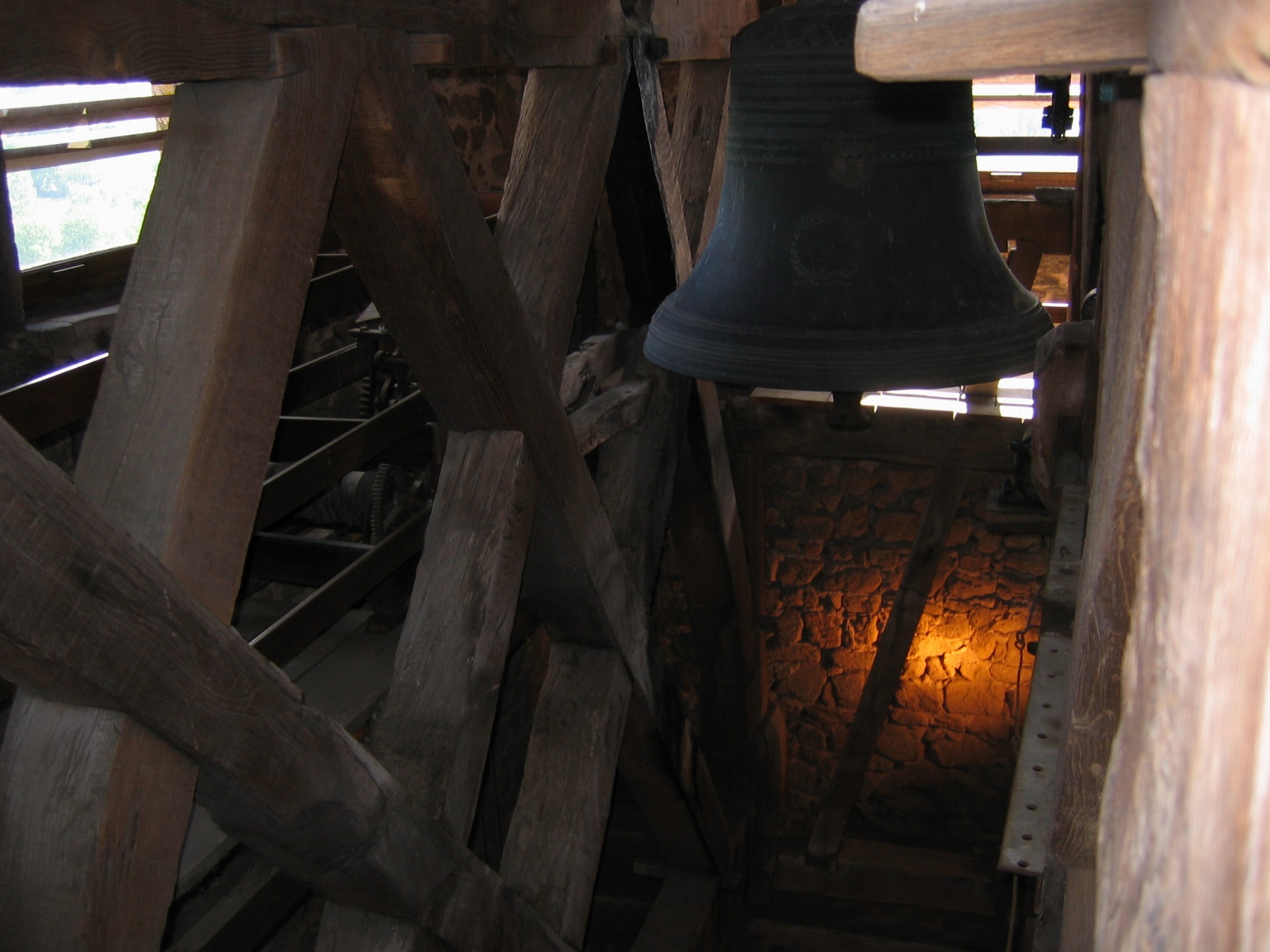 La visite vous permet de découvrir la charpente de 1679 et la carillon de 1844. Au pied du clocher, la croix de l’ancien cimetière porte en son centre les initiales DR, peut-être celles du forgeron qui l’a fabriquée.