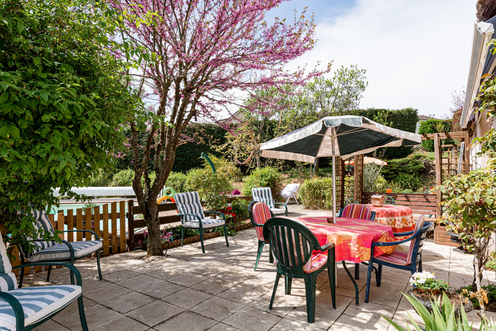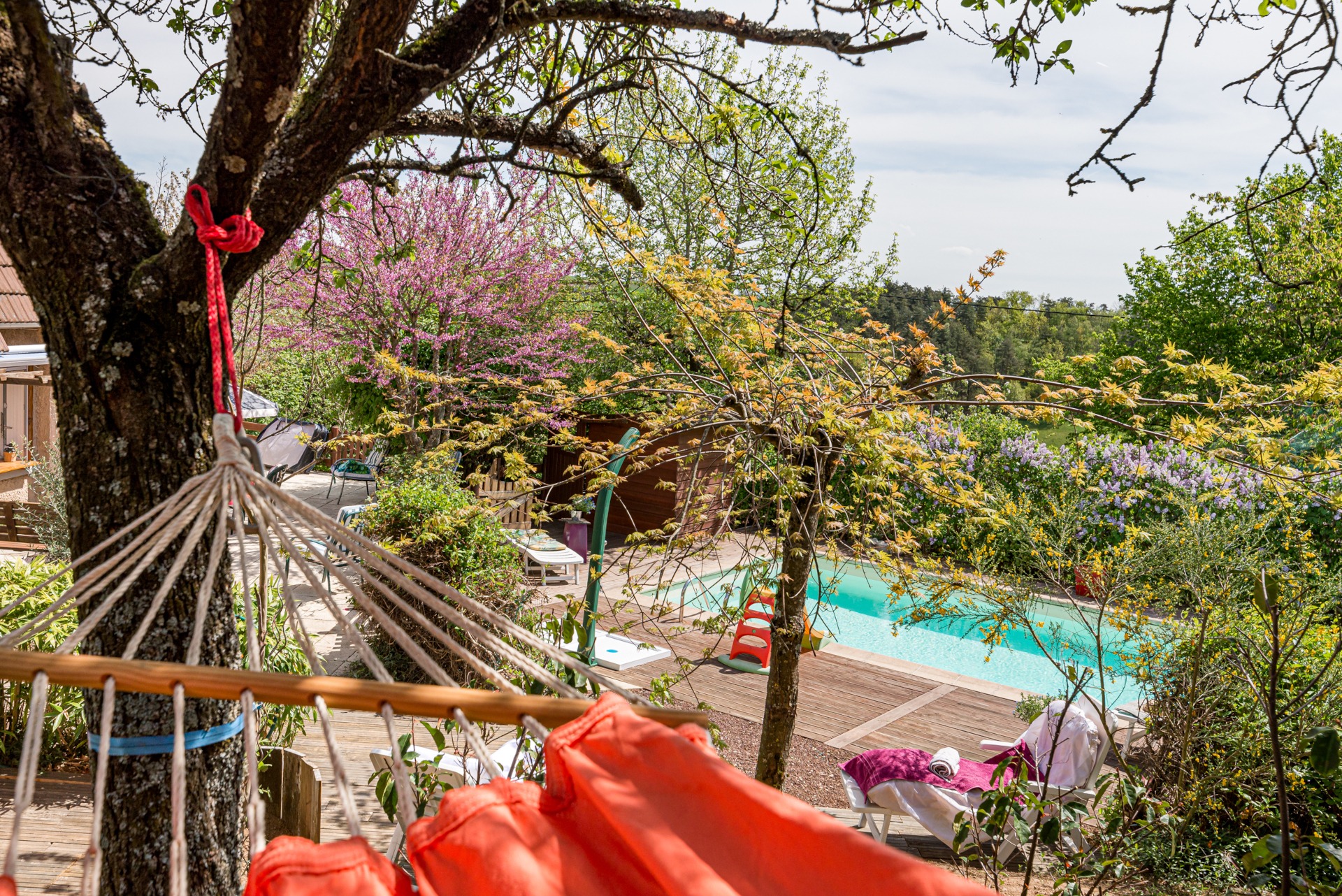 Profitez d’une piscine au sel, d’un spa privatisé et de terrasses avec fauteuils de jardin, parasols et bains de soleil dans un grand jardin arboré. Les petits déjeuners sont offerts, et la maison est le point de départ idéal pour belles balades en pleine nature.