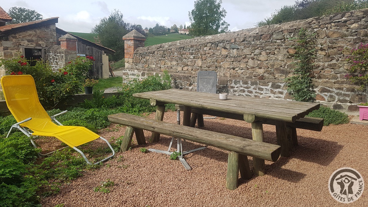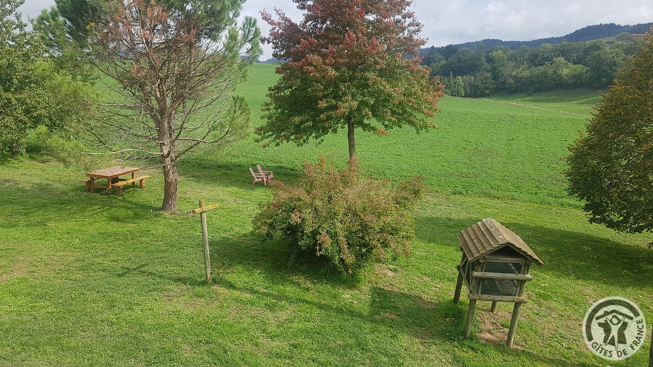 Une adresse à découvrir au coeur des Monts du Beaujolais, à proximité du Lac des Sapins ! Dans une ferme (familiale) en activités du XVIIIème siècle avec pigeonnier, puits et belle galerie extérieure. A l'étage : 4 chambres (2 chambres familiales 1 lit 2 personnes et 1 lit superposé dans chacune), (1 chambre 1 lit 2 personnes), (1 chambre 2 lits 1 personne). Salle d'eau et wc privés dans chaque chambre. Rez-de-chaussée : vaste pièce de jour (55 m2), coin salon (TV) et coin cuisine réservés aux hôtes, toilettes. Cour non fermée, terrasse, barbecue, nombreux espaces autour de la propriété. Didier, passionné par son métier pourra vous proposer une visite de la ferme et ses animaux : vaches, poules, lapins, canards, poney. Martine vous régalera au moment du petit déjeuner avec ses yaourts faits "Maison", ses confitures, ses patisseries.. ..Accueil cavalier. Possibilité location de la totalité de l'hébergement. A 5 km du lac des Sapins (avec la plus grande piscine biologique d'Europe).