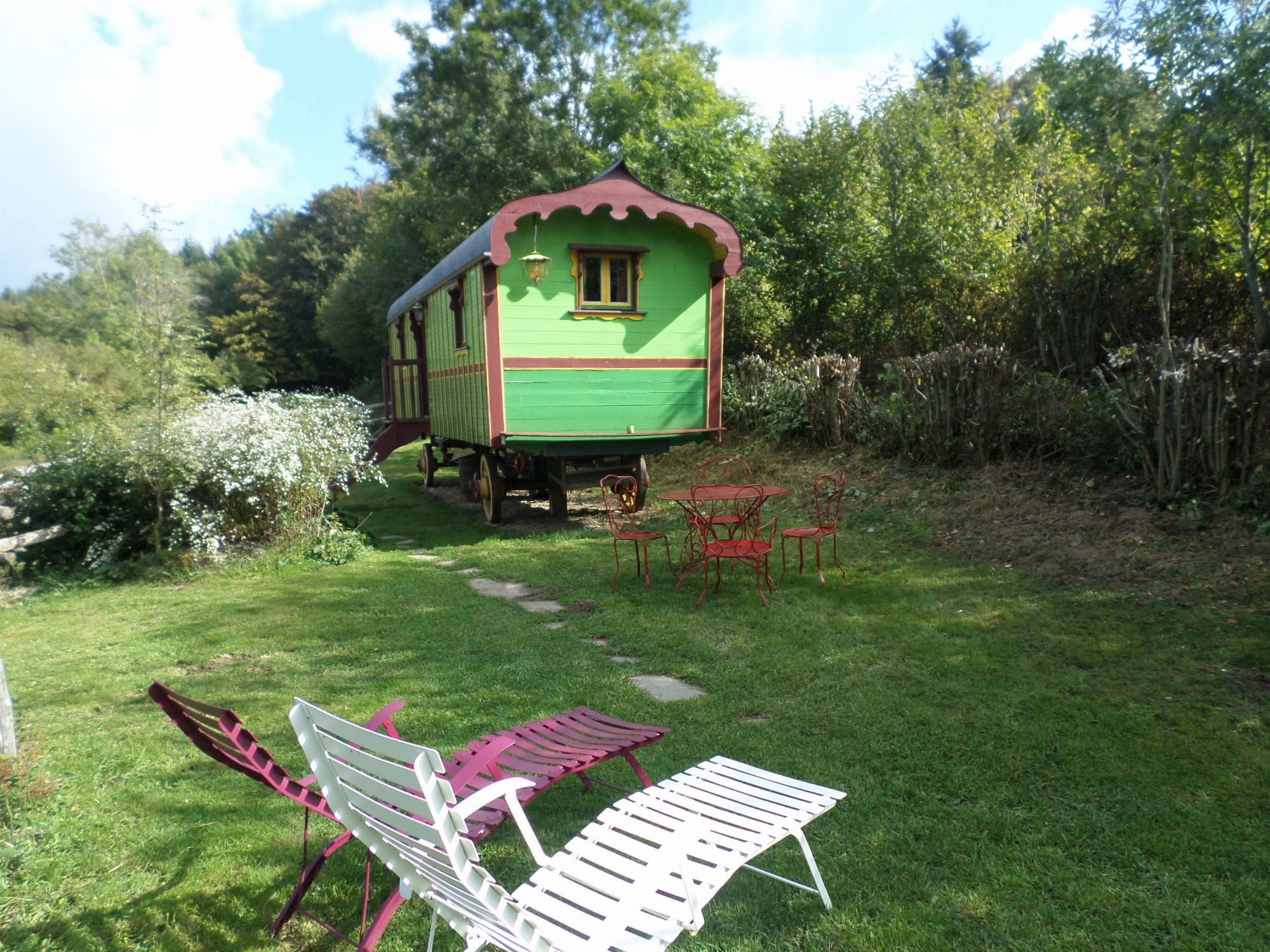 Deux anciennes roulottes de forains, ainsi qu'un tout petit pavillon de bois viennent compléter cette offre , avec sanitaires communs dans une partie indépendante de la maison.