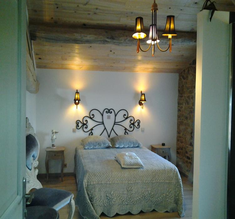 Fleur de Cerisier a été rénovée avec beaucoup de soin et de goût dans une petite maison en pierres de caractère avec accès indépendant annexe à leur habitation. A l'étage, la chambre de type duplex est aménagée sur 2 niveaux et l'ensemble est à votre disposition. 1er niveau : vaste pièce de jour (poële à bois), coin-cuisine, coin-salon, 2 lits 1 personne, possibilité lit 1 personne supplémentaire, 1 wc privé avec l.mains, lit bébé. Au niveau supérieur : vaste chambre ouverte (1 lit 1.60 X 2.00) , douche à l'italienne donnant sur cet espace, lavabo, wc. Les petits déjeuners pourront être servis dans le jardin fleuri et arboré (clos) ou dans l'espace couvert prévu à cet effet (avec cheminée/barbecue), salon de jardin en résine tressée avec coussins.
