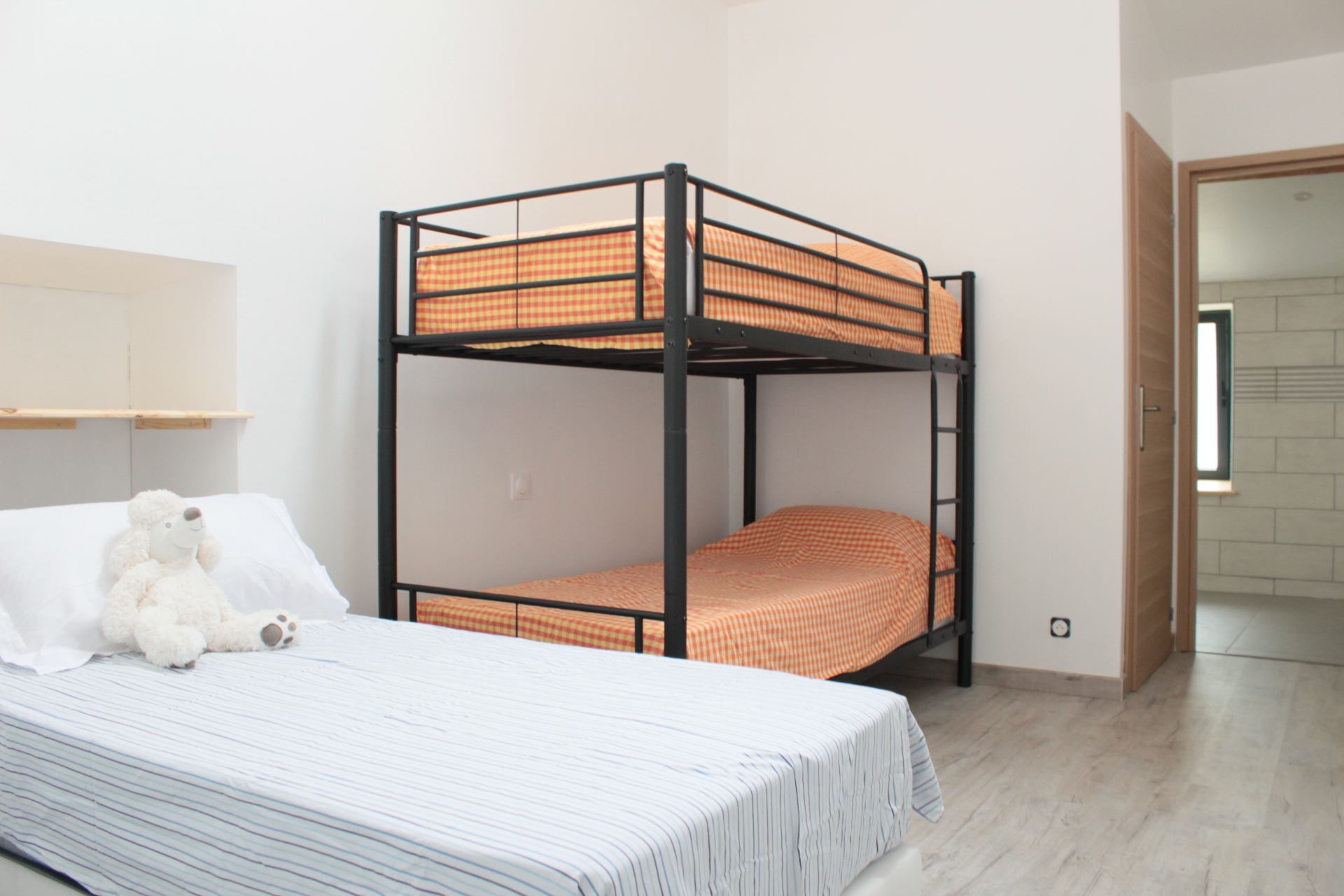 Pilat composé d'une chambre parentale (lit double 180 cm) et d'une chambre attenante pour les petits aventuriers (& lit 90 cm + lits superposés 90 + 90 cm