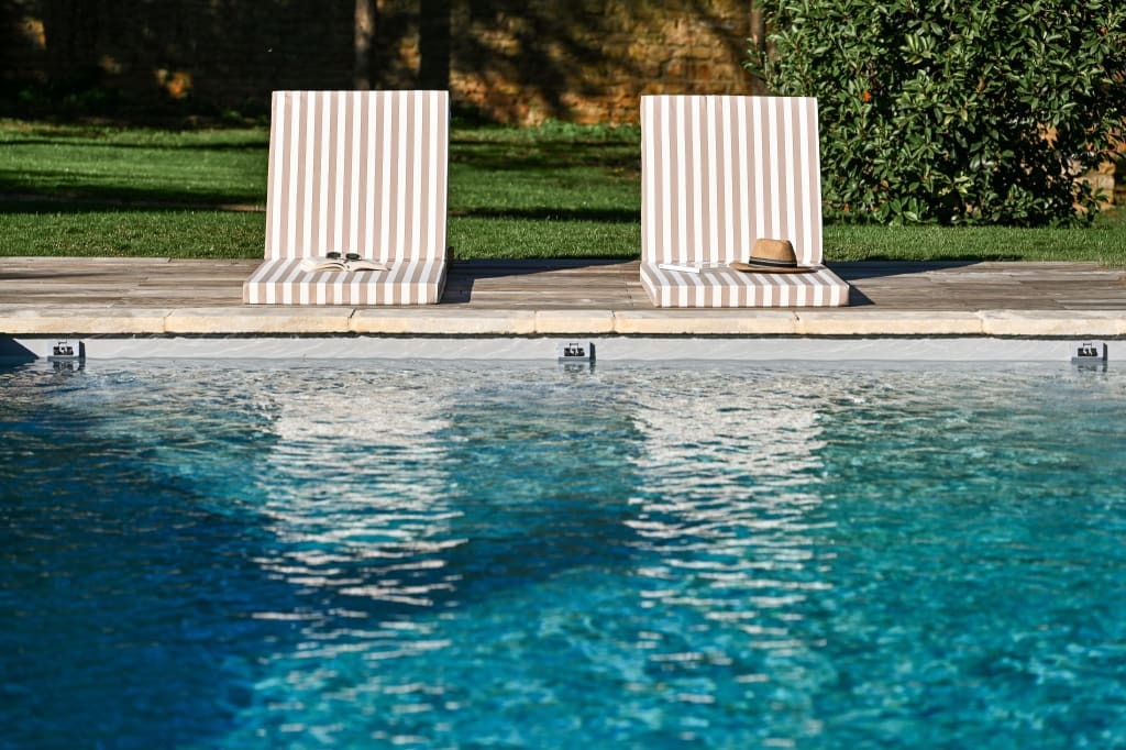 Dans un cadre calme et intimiste, la plage prolonge naturellement la piscine et invite à la relaxation, à la lecture ou à la contemplation. Transats, douceur de vivre et atmosphère apaisante font de cet espace un lieu privilégié, où le temps semble suspendu.