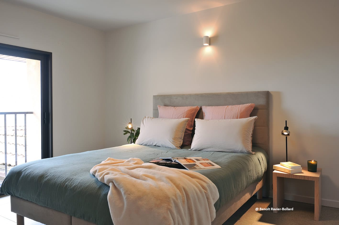Située côté terrasse, la suite Melchior séduit par son volume généreux et sa luminosité. Elle dispose d’une vaste salle de bain indépendante, de toilettes privatives et d’un accès direct à la cuisine et au salon partagés avec sa suite jumelle, Balthazar.
