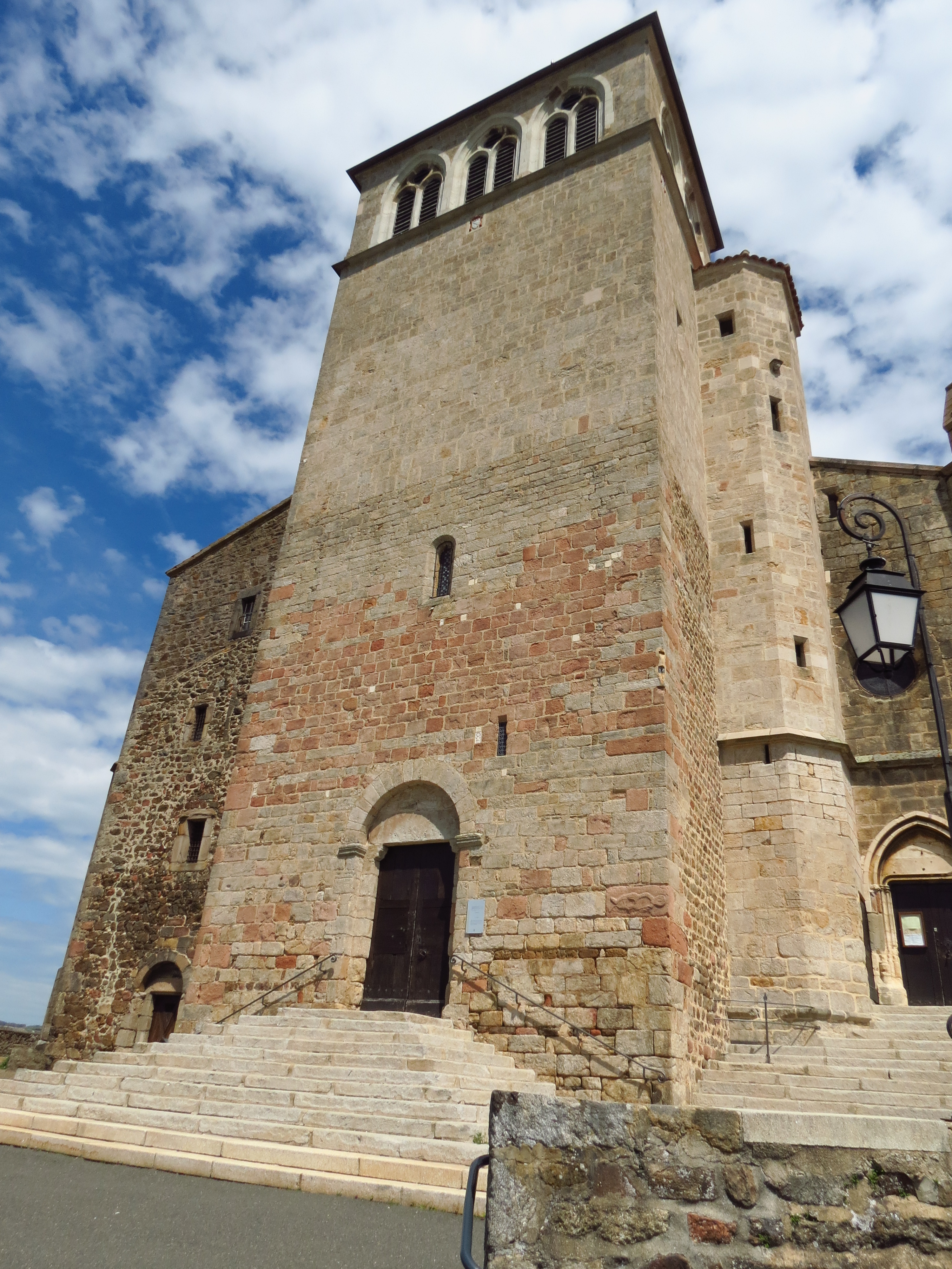 - A « Pluvy », prendre direction « La Doue – Saint-Symphorien ». Au stop, tourner à gauche et quitter le balisage GRP® pour rejoindre l’église. Monter jusqu’à la table d’orientation (devant la collégiale).