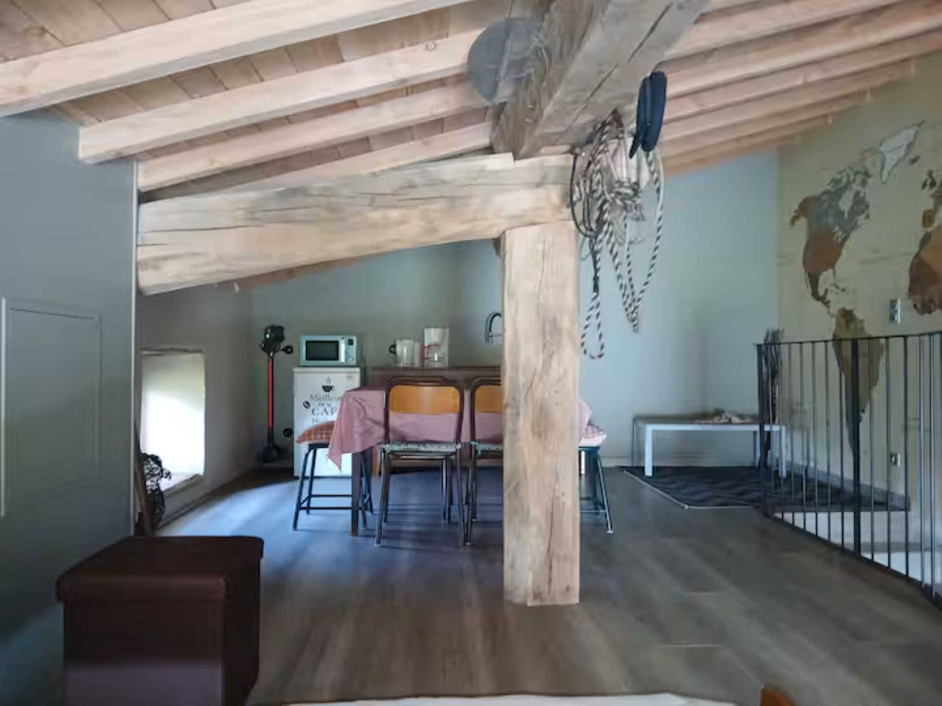 Dans une ancienne ferme restaurée en gardant le charme de l’ancien, Ghislaine vous accueille dans un dortoir spacieux rénové en 2022.