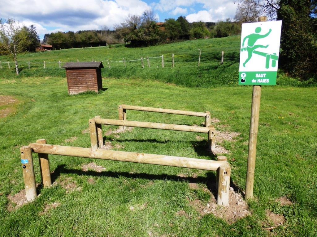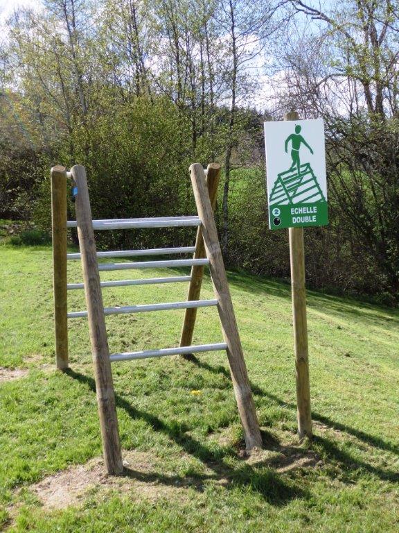 Différents ateliers composent ce parcours de santé : barres à ramper, échelle double, barres d'exercices, barres parallèles, saut de haies, mat à grimper...