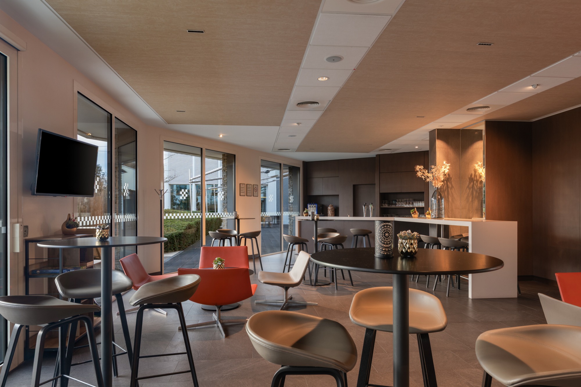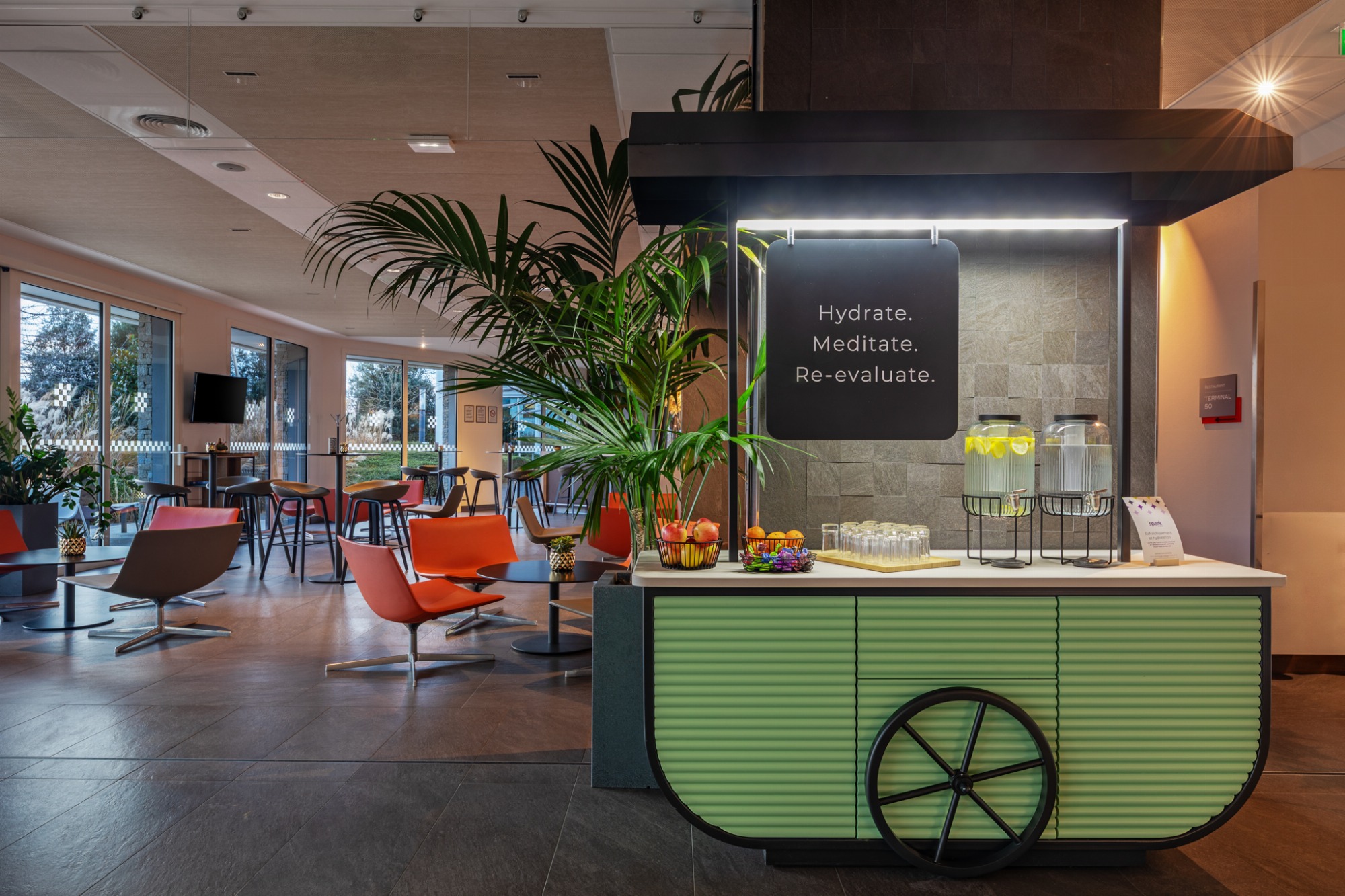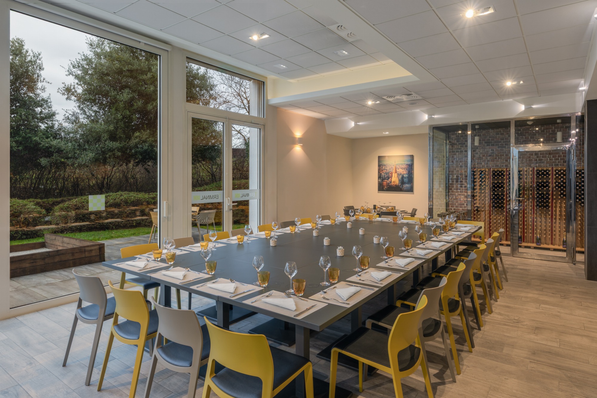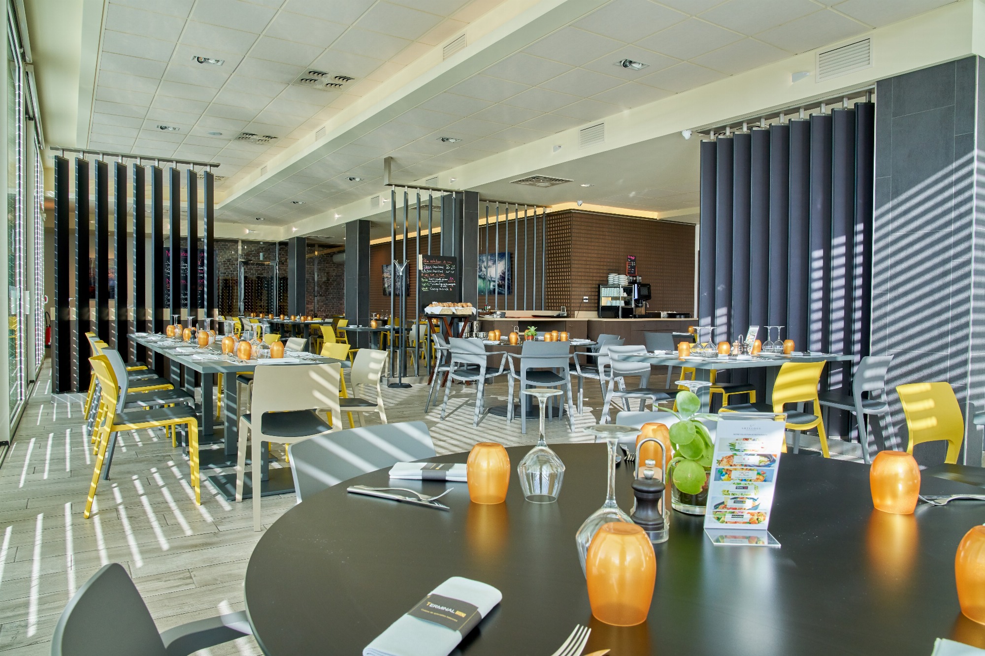 Vous pourrez également vous relaxer au bar, ou sur notre agréable terrasse extérieure. Pour vos déjeuners ou dîners, rendez-vous au Terminal 50, le restaurant de l'Hôtel. Le Chef et toute son équipe vous accueillent du lundi au vendredi et vous proposent une cuisine du marché élaborée avec des produits de saison.