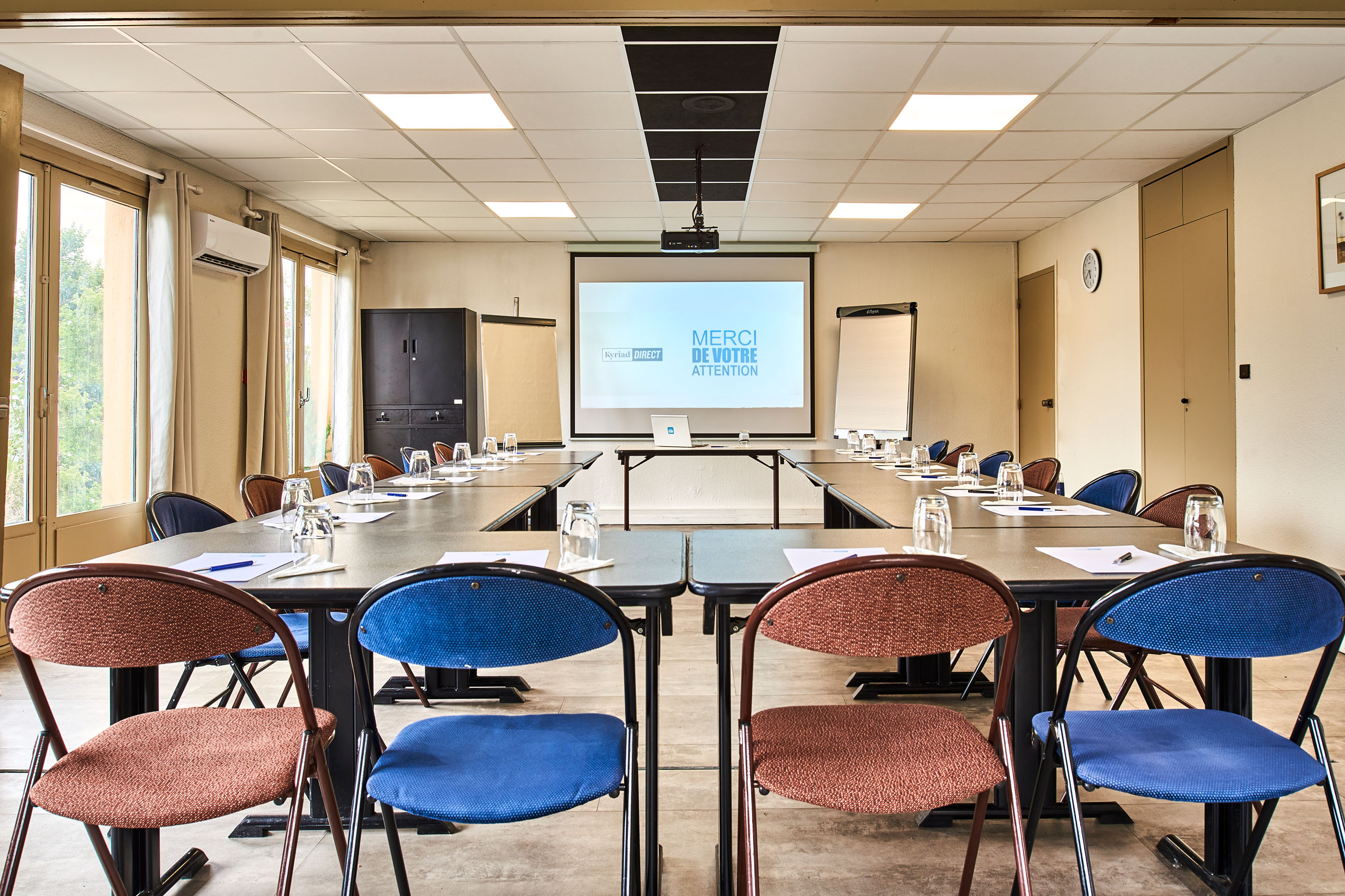 L’établissement met à disposition une salle de réunion équipée pour les groupes de travail : paperboard, sonorisation, vidéoprojecteur et wifi. Un espace qui vous permettra de travailler de la meilleure des manières avec l’ensemble de vos collaborateurs.