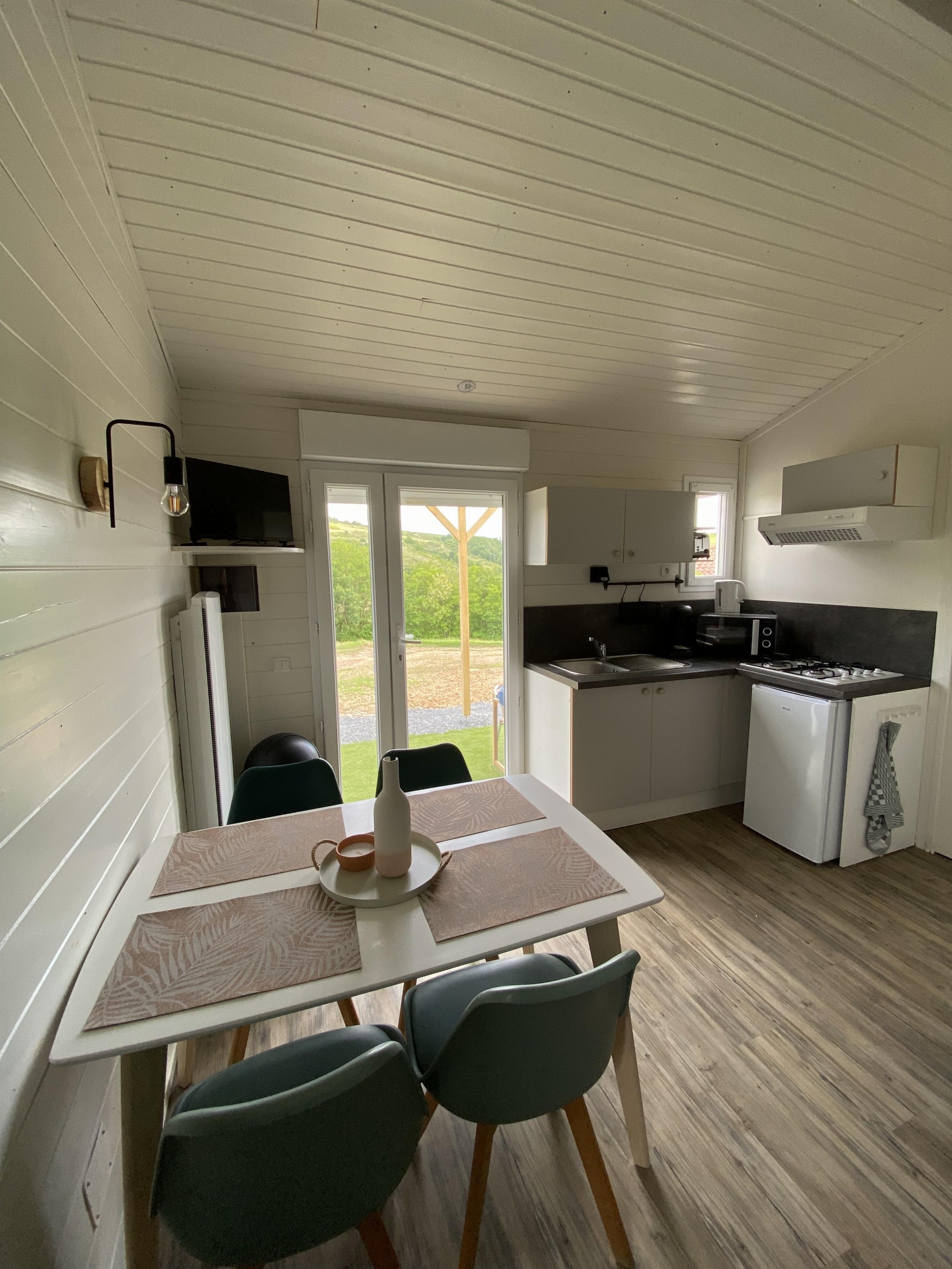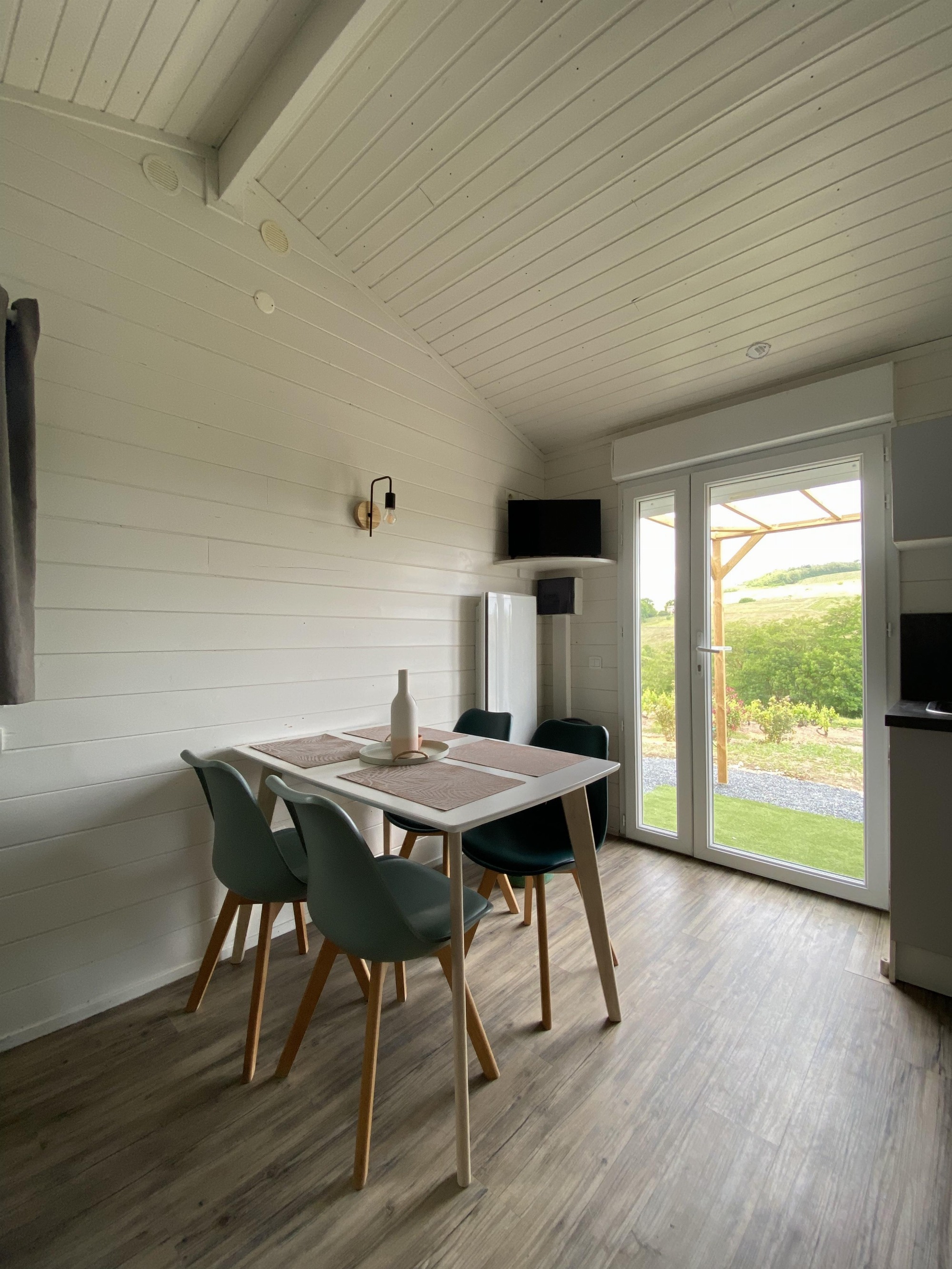 Le logement est situé sur notre domaine viticole. Maison en bois de 19m² tout équipée :