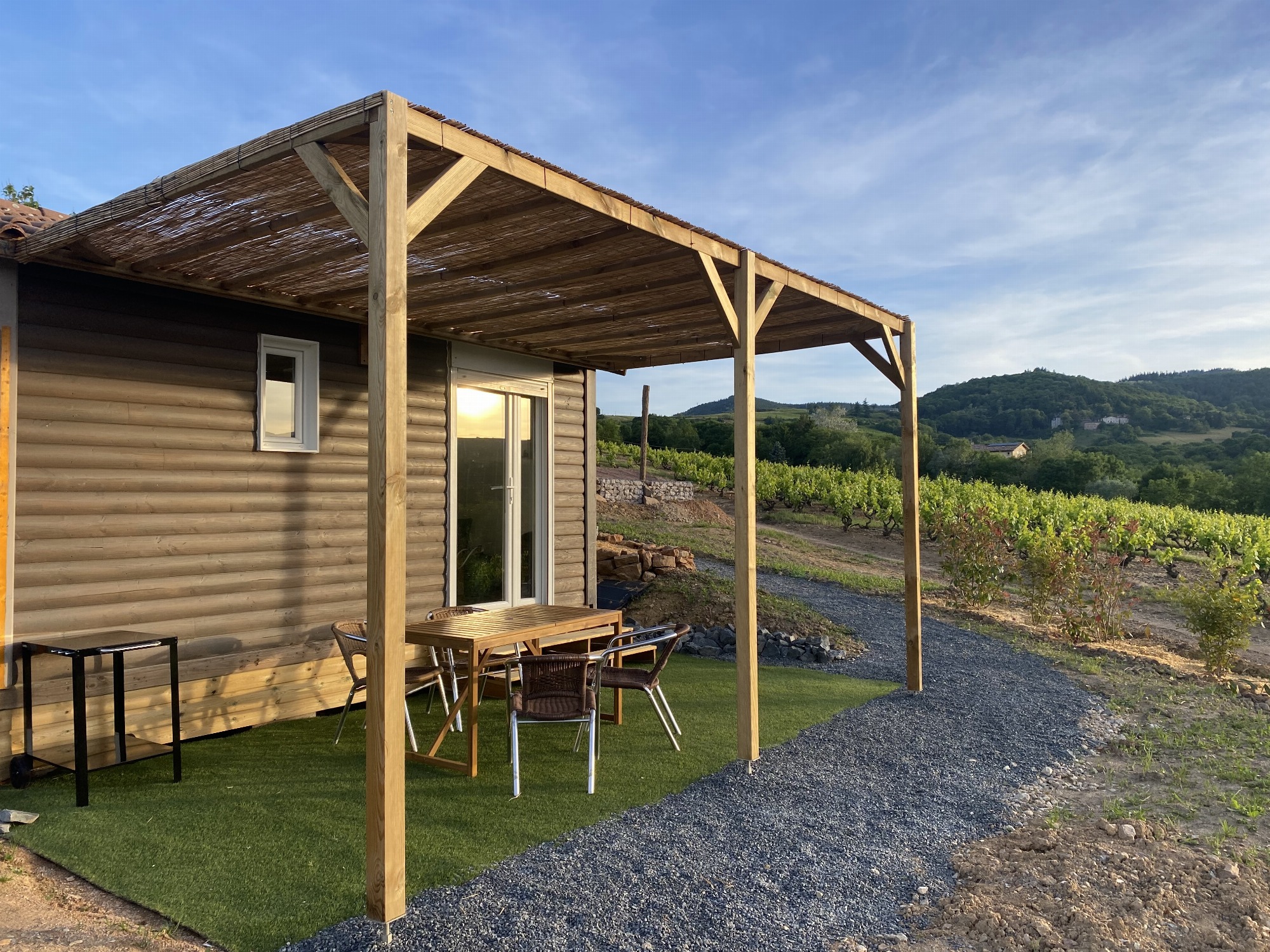 Le Domaine de Croifolie vous ouvre ses portes et met à votre disposition 3 lodges en bois de19m2 tout équipé au milieu des vignes du Beaujolais.