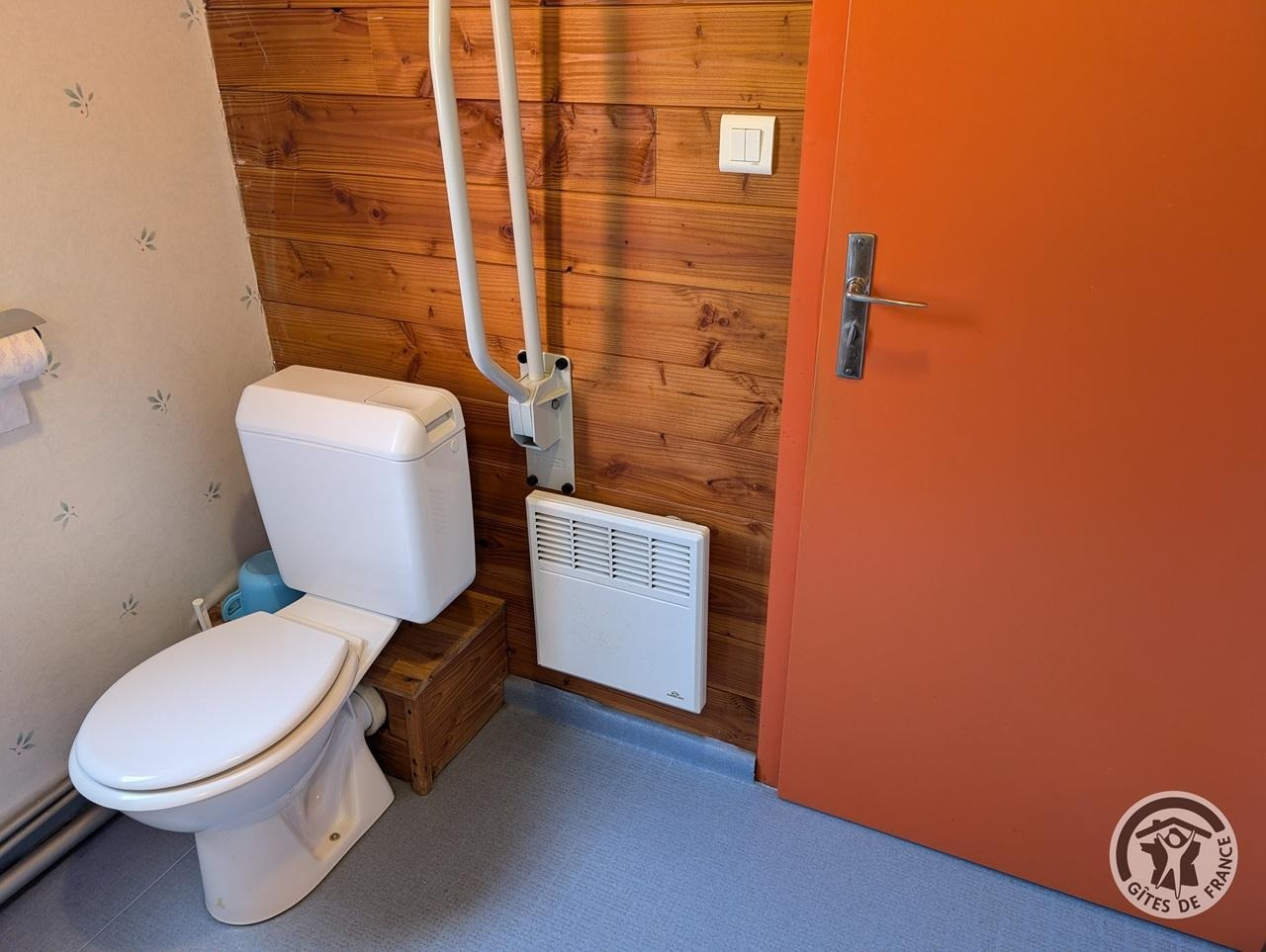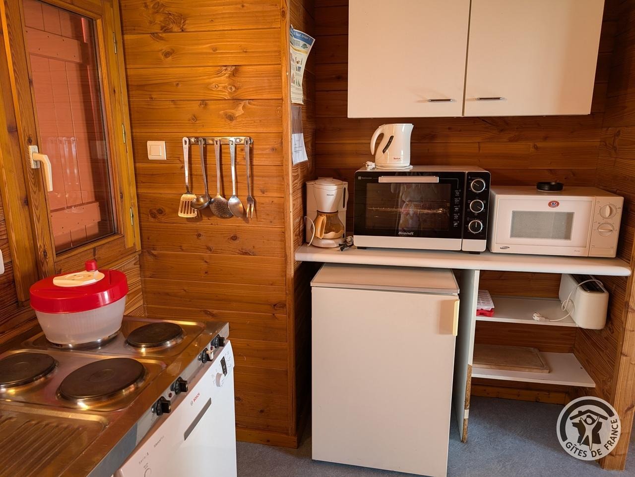 Rampe d'accès et entrée par loggia dans séjour avec coin-cuisine très bien équipé et canapé convertible 2 personnes. Salle d'eau avec toilettes accessibles aux personnes à mobilité réduite.
