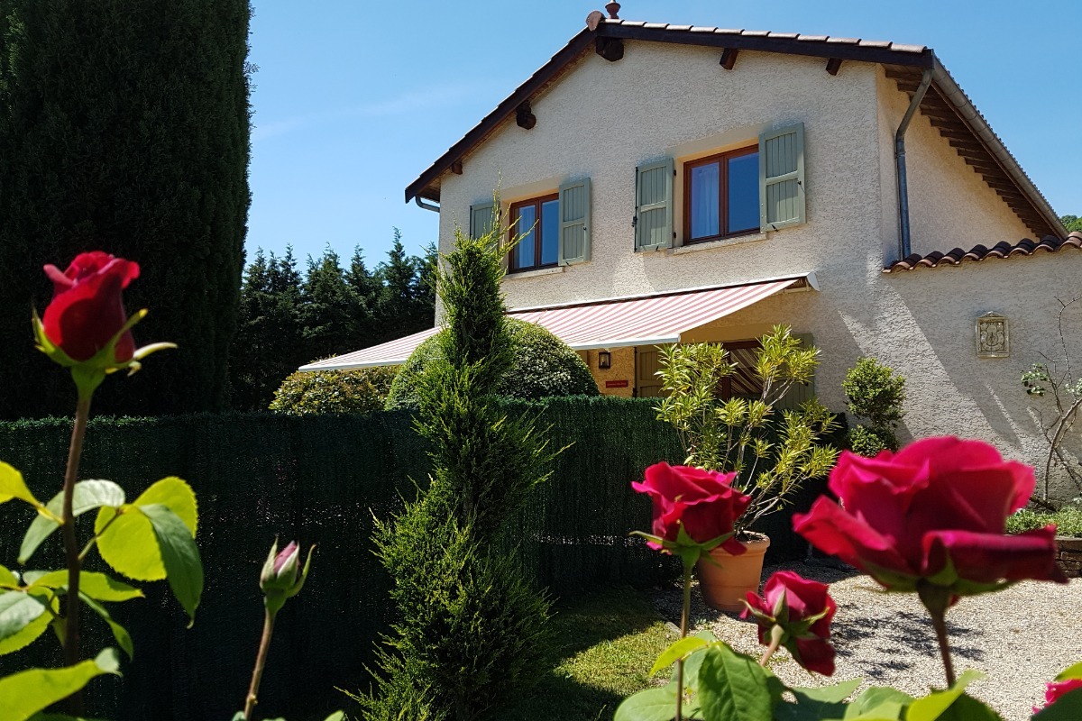 Le Mas des Peupliers est une maison de 95m² sur 2 niveaux, située au calme, à proximité du Col de la Luère dans les Coteaux du Lyonnais.