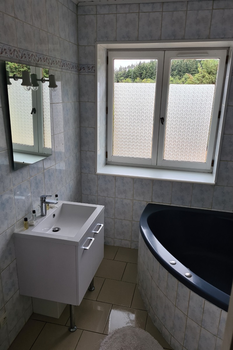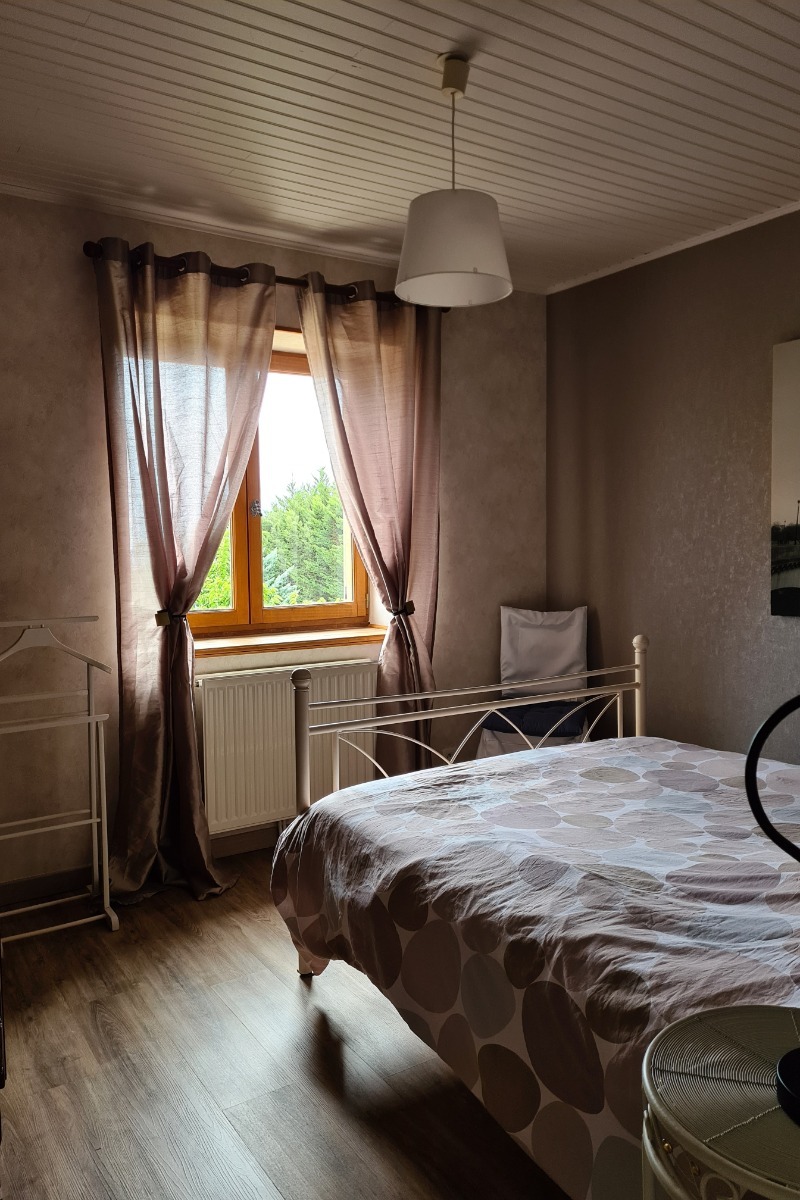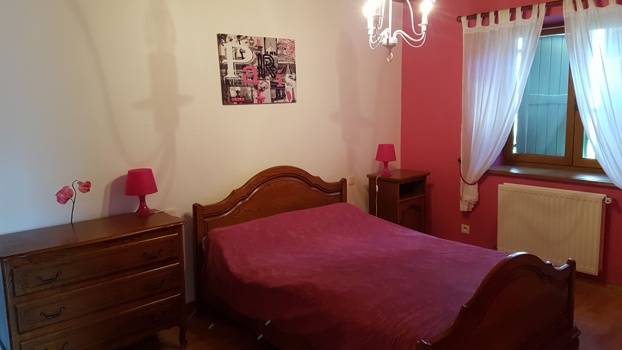 A l'étage, trois chambres avec lits en 140 et 90 Salle de bain avec WC. Terrasse aménagée avec salon de jardin et accès à 300m² d'espaces verts.