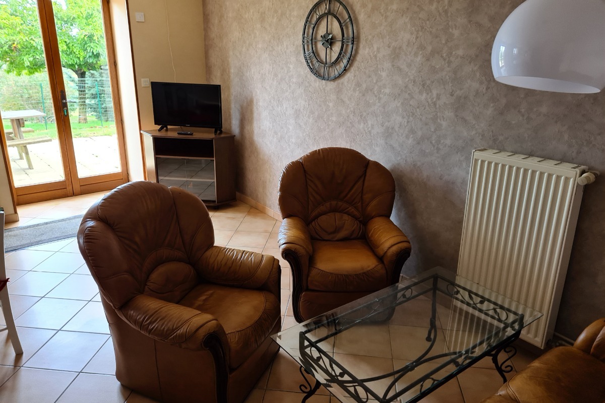 Le Mas des Peupliers est une maison de 95m² sur 2 niveaux, située au calme, à proximité du Col de la Luère dans les Coteaux du Lyonnais.