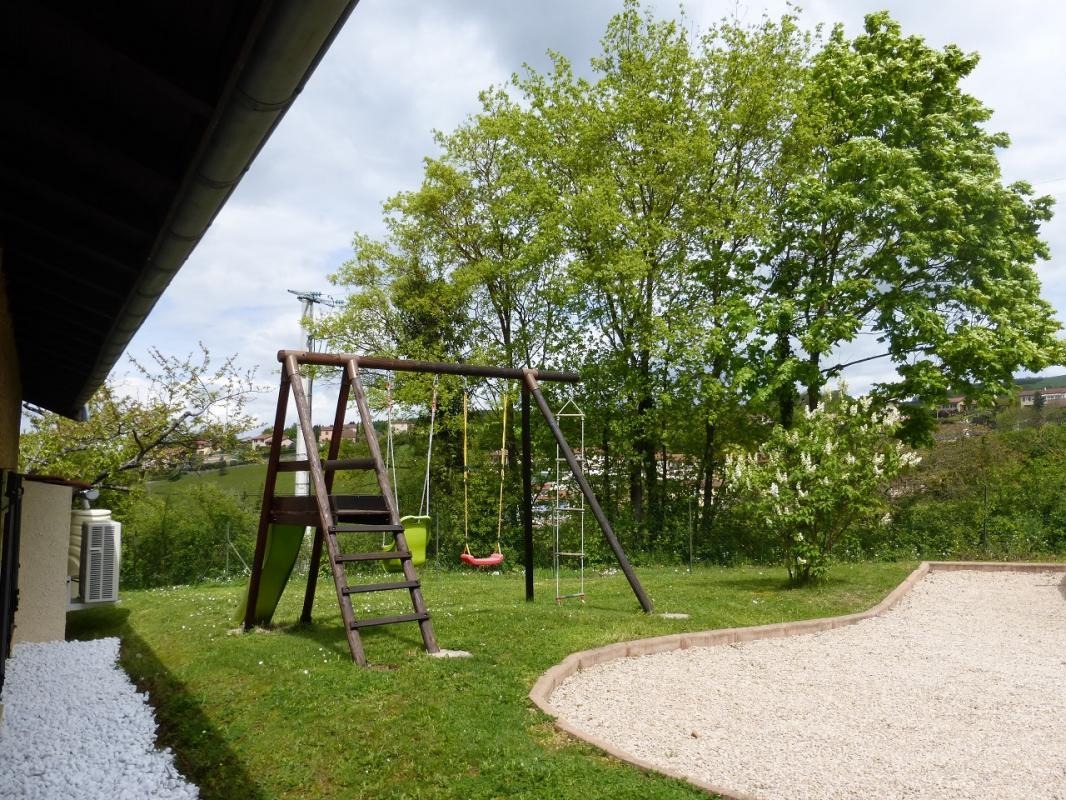 A 3 km de l'Arbresle, juste à la sortie du village de Sain-Bel, le gîte Les Griottes est aménagé dans une maison de type villa, complètement indépendante sur son terrain clos. Situé dans un petit groupe de plusieurs maisons, sur les hauteurs de la commune, il offre une vue superbe et vous fait profiter de tous les avantages de la campagne proche de la ville et des services. Très fonctionnel et lumineux, vous serez séduits par la qualité de ses aménagements et par le soin apporté par la propriétaire pour vous offrir toutes les commodités. Proximité du centre de formation ENEDIS, de la gare ( accessible à pied ) et du Couvent de la Tourette. Accueil chaleureux. Rez-de-chaussée : vaste séjour ouvrant sur la terrasse, coin salon avec poêle à granulés bois, coin repas, cuisine séparée toute équipée. 2 chambres (1 chambre 1 lit 2 personnes, 1 chambre 2 lits 1 personne), salle d'eau, wc. Chauffage électrique et poêle granulés bois, climatisation réversible. Garage fermé avec code. Terrasse dallée (salon de jardin, barbecue, chaises longues) et jardin clos (600m²), jeux d'enfants, parking.