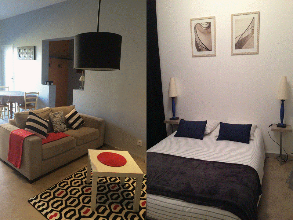 Ce meublé se compose d'une grande pièce avec cuisine ouverte, salon, canapé convertible, d'une salle de bain, et de deux chambres dont une avec lits superposés. Terrasse aménagée. Parking.