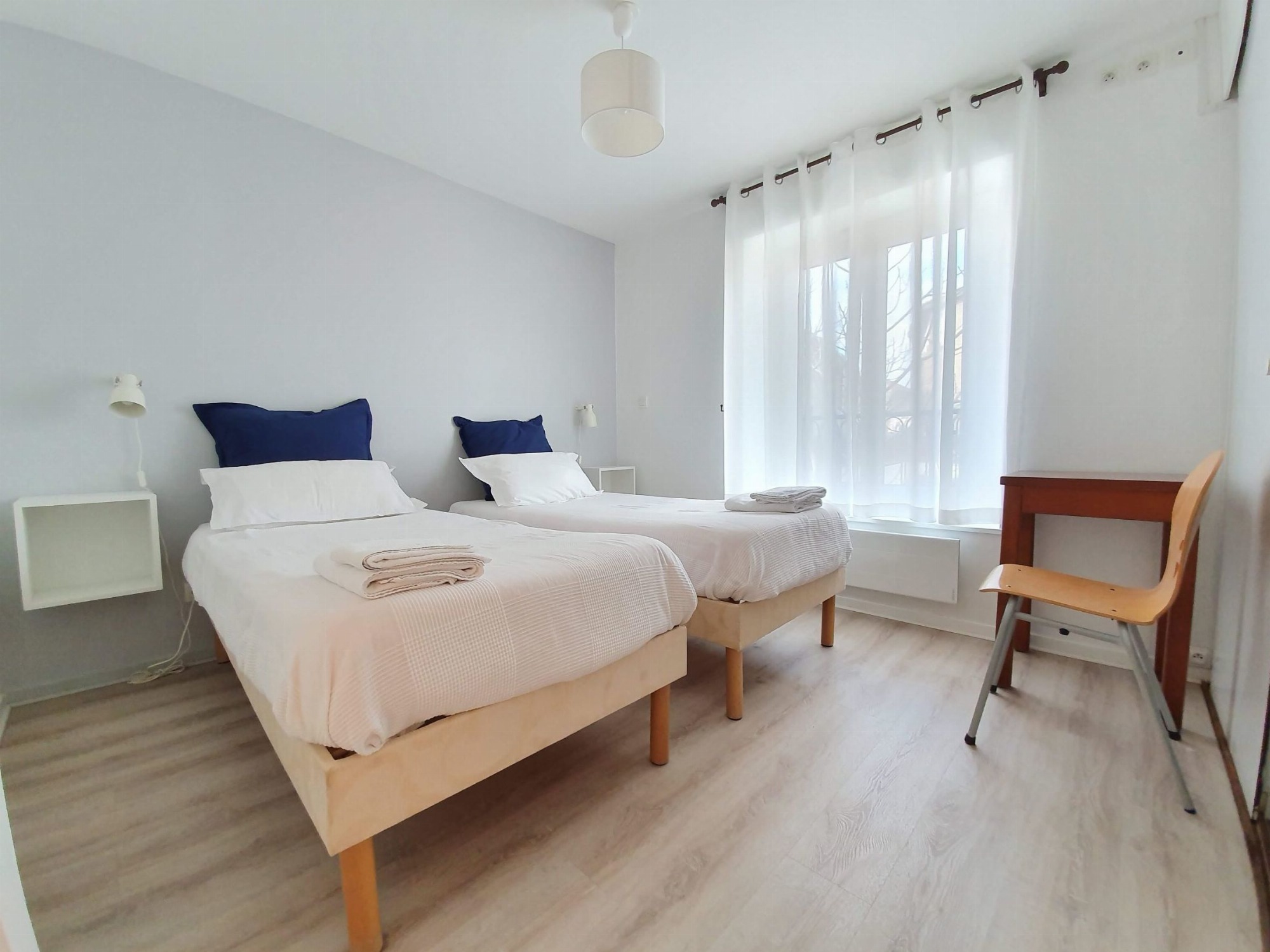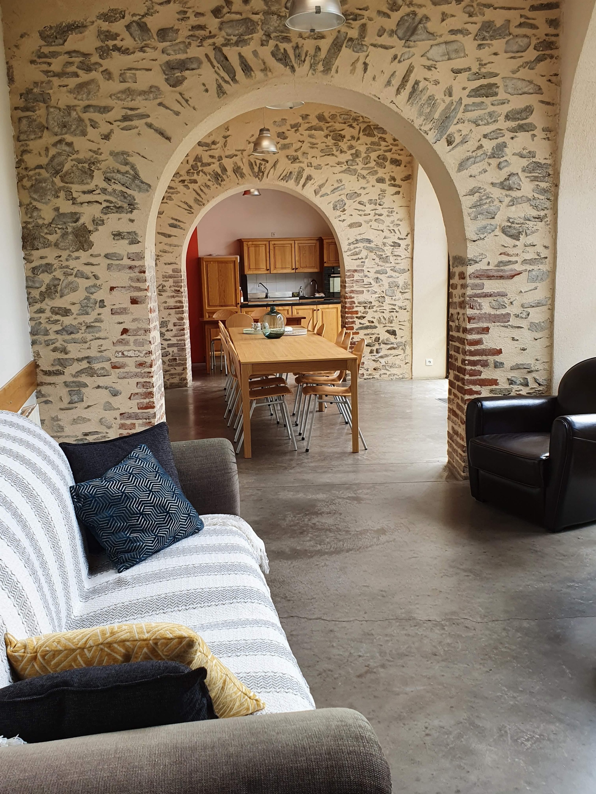 Pièce de vie de 60m² avec cuisine équipée pour l'accueil de groupe. Partie nuit à l'étage : une chambre de 4 personnes, une chambre de 3 personnes et 4 chambres doubles. Une salle d'eau dans chaque chambre. Terrasse au sud. Jardin de 500m². Grand parking devant la maison.