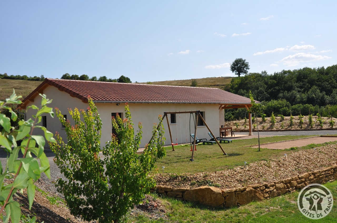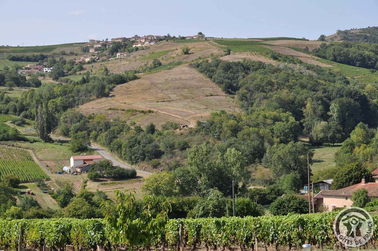 Au coeur du Beaujolais, à 1 km du village médiéval d'Oingt, ce gîte est aménagé dans une maison complètement indépendante, de plain pied, avec une vue magnifique.
